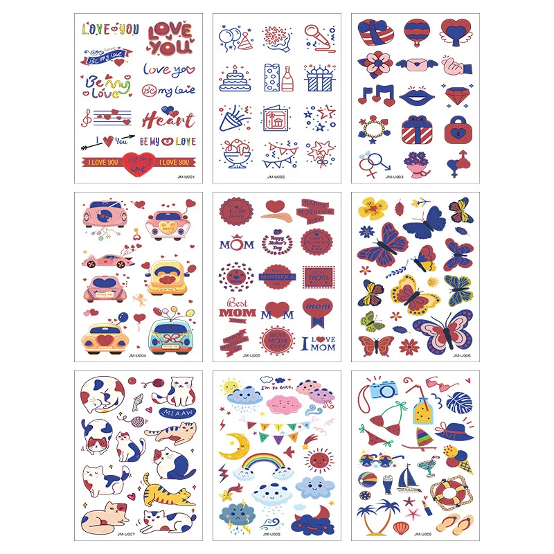 Наклейка с имитацией татуировки для детей, обесцвечивающая, временная, водонепроницаемая, устойчивая к поту, трансферная, с животными, мультяшное лицо, детская игрушка, подарок