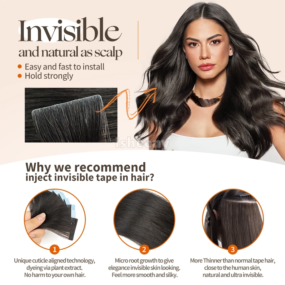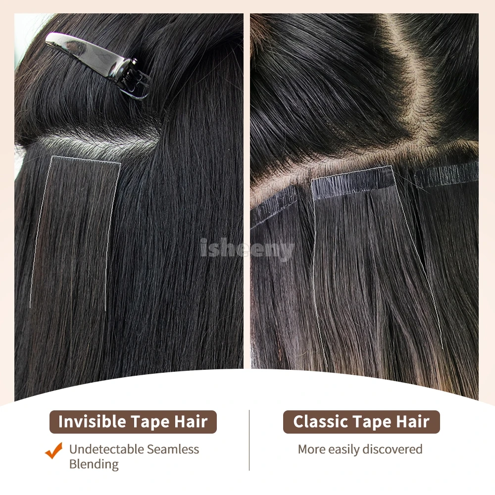 Isheeny 12 "16" 20 "Утковая лента для наращивания волос из искусственной кожи, 10 шт., невидимая лента для наращивания волос, прямые машинные человеческие волосы Remy