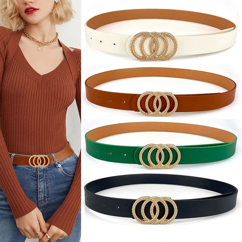 Дизайнерский женский ремень с тремя кольцами и золотой пряжкой, модный ремень в стиле Ins, трендовый декоративный ремень, подходящий ко всему женский пояс для джинсов