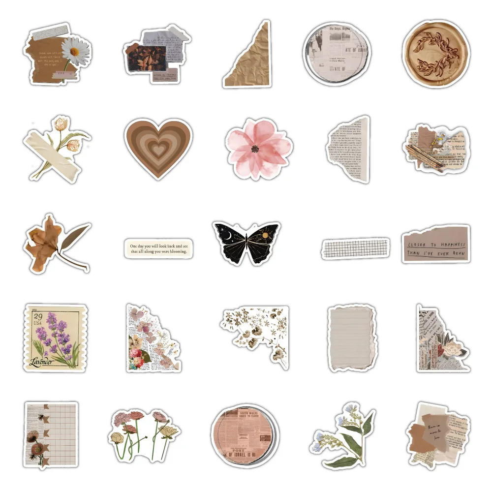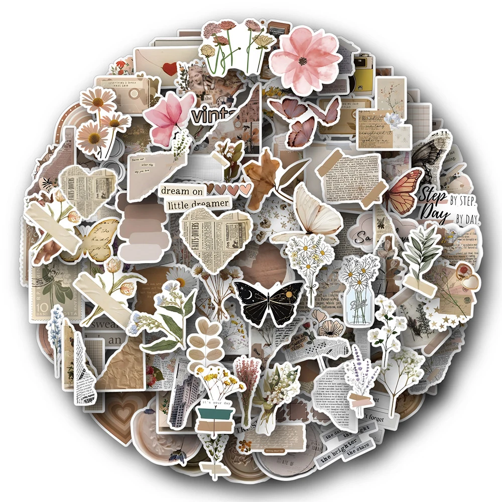 10/30/60/120 шт ретро искусство цветок бабочка эстетические наклейки s винтажная наклейка ноутбук телефон багаж записки автомобиль граффити стикер