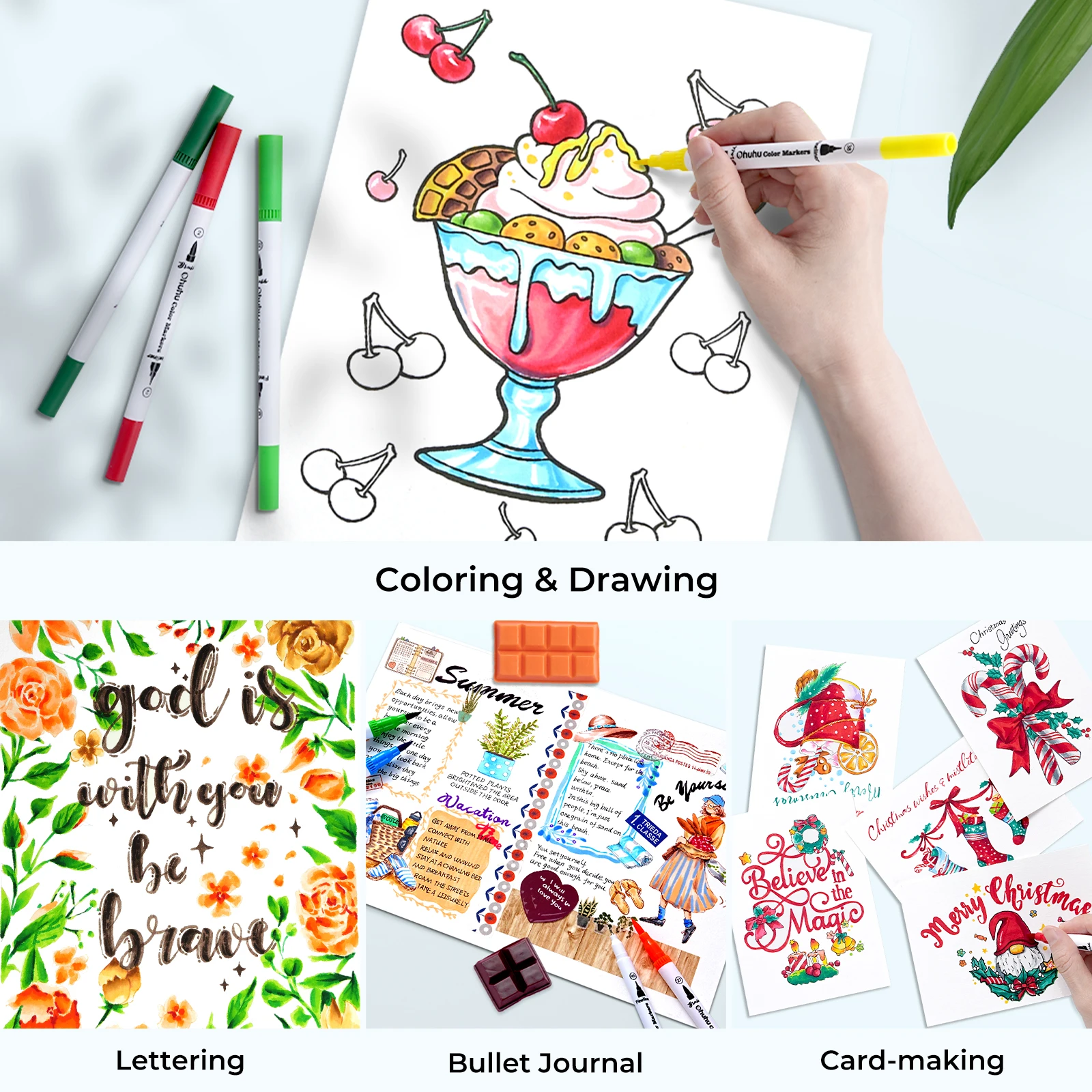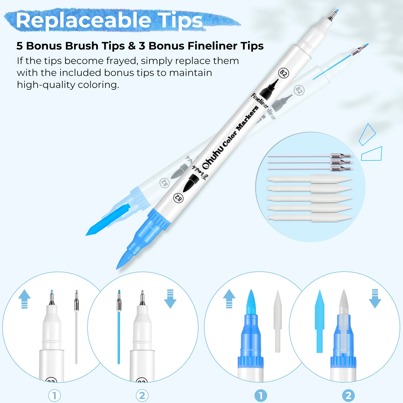 Художественные маркеры Ohuhu, набор маркеров с двумя наконечниками, акварельная ручка, раскраска, акварельная кисть, тонкая подводка, живопись, рисунок, школьные принадлежности