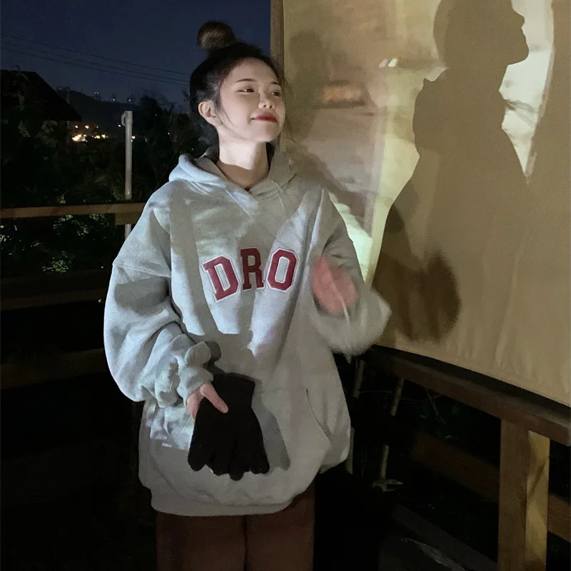 Женские толстовки, Новый Зимний пуловер, свободный Женский свитшот в Корейском стиле Харадзюку, повседневные оранжевые белые свитшоты