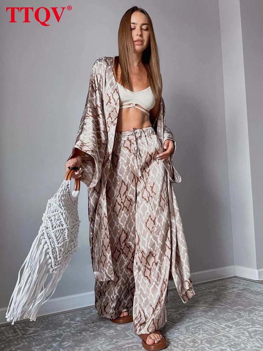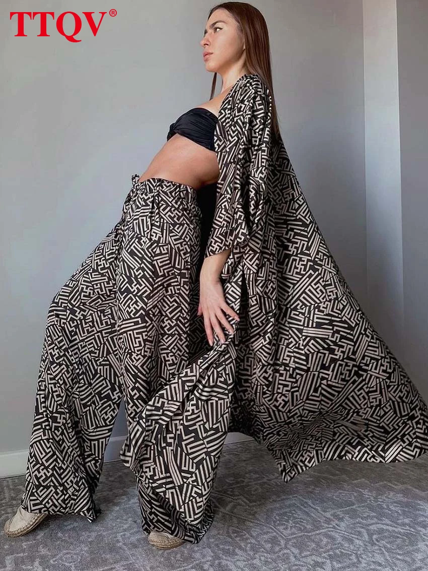Комплект одежды TTQV женский из двух предметов, элегантный черный модный Свободный Топ с длинным рукавом и длинные штаны на шнуровке