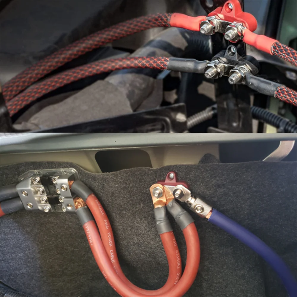 2 пары красных + черных 1/4 дюймовых штыревых соединительных стоек для аккумулятора из нержавеющей стали M6 двойной блок распределения питания для грузовика RV лодки