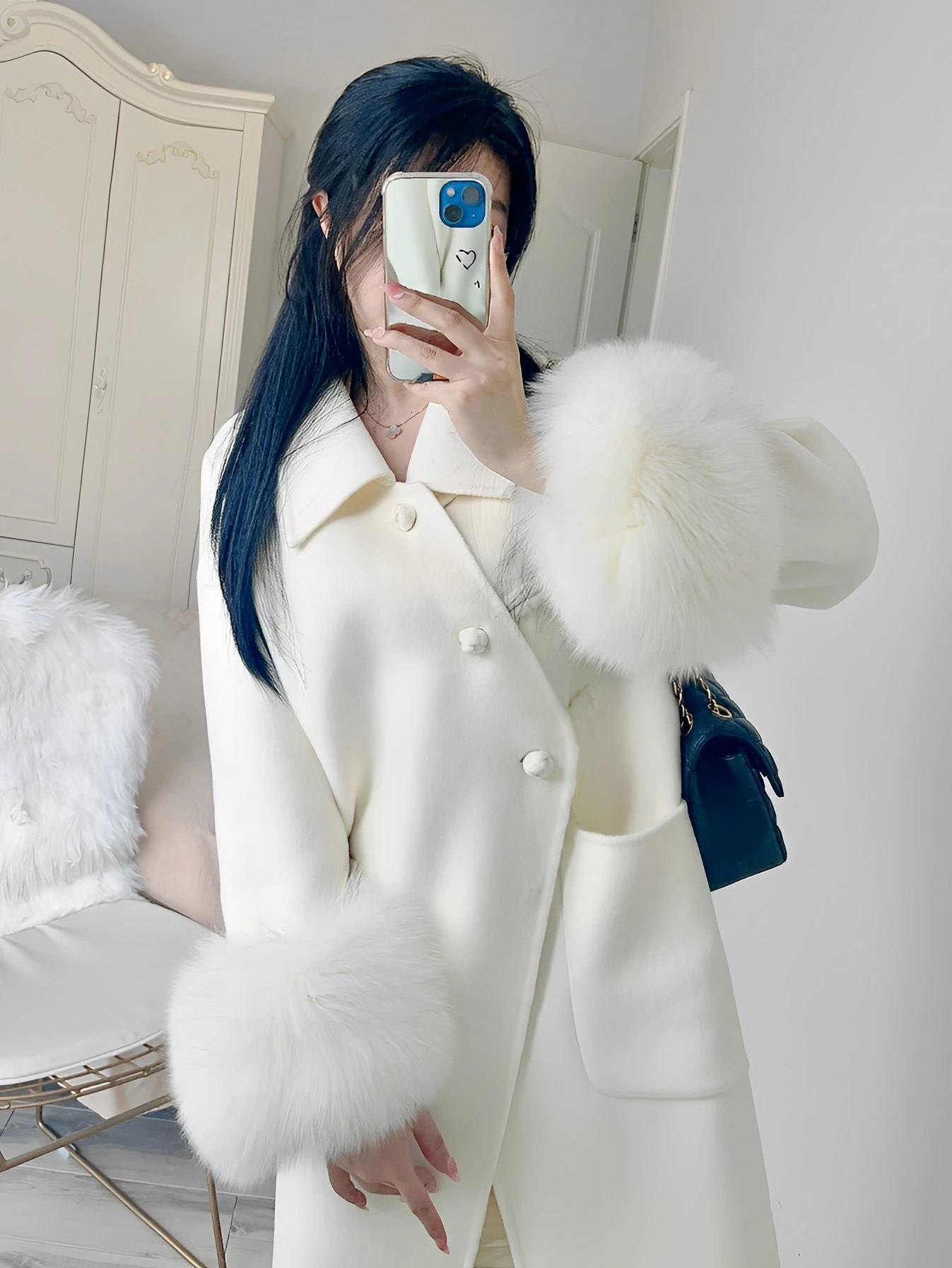 Шерстяное пальто во французском стиле ретро в ленивом стиле с длинным меховым воротником