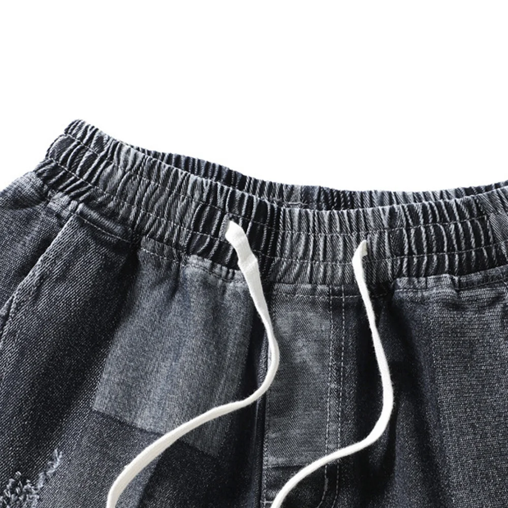 Джинсы мужские летние до колен, свободные брюки из денима в стиле пэчворк, с эластичным поясом, модель NZ038