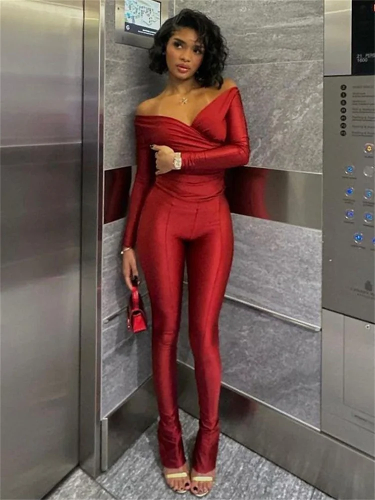 Simenual, повседневный обтягивающий Женский комплект из двух предметов, сексуальный укороченный топ с глубоким v-образным вырезом, штаны с высокой талией, одежда Cyber Y2K, облегающие костюмы, уличная одежда