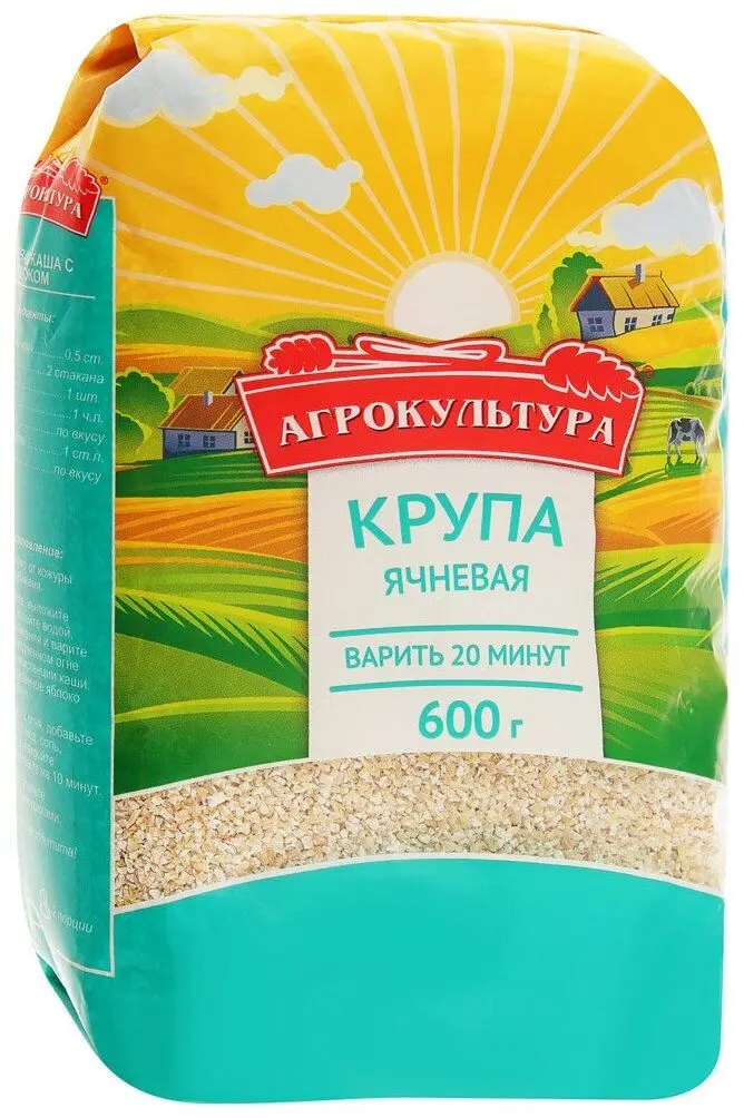 Упаковка 12 пачек Ячневая крупа Агрокультура 600г