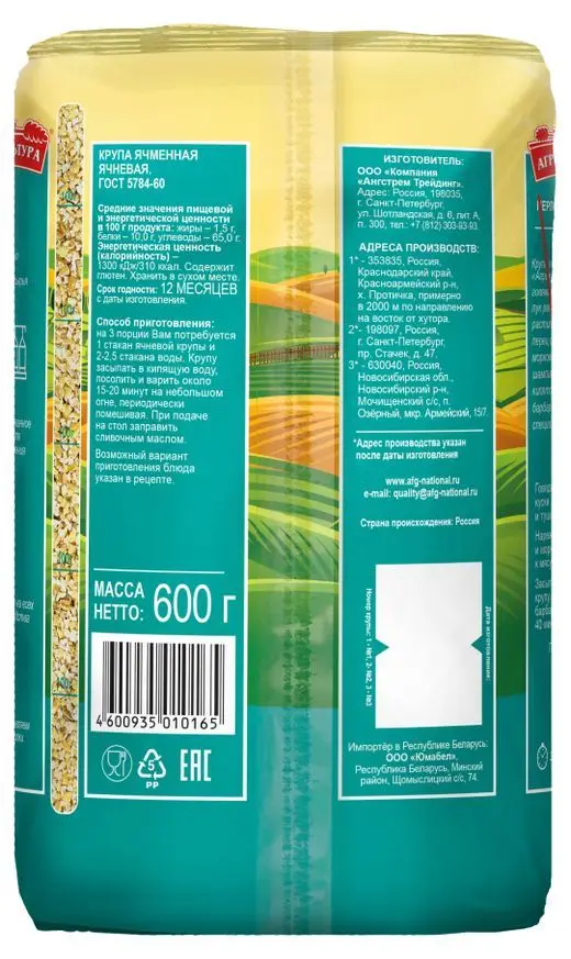 Упаковка 12 пачек Ячневая крупа Агрокультура