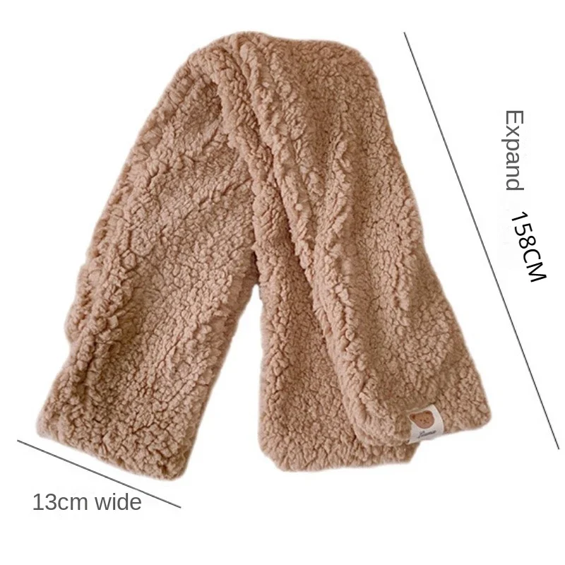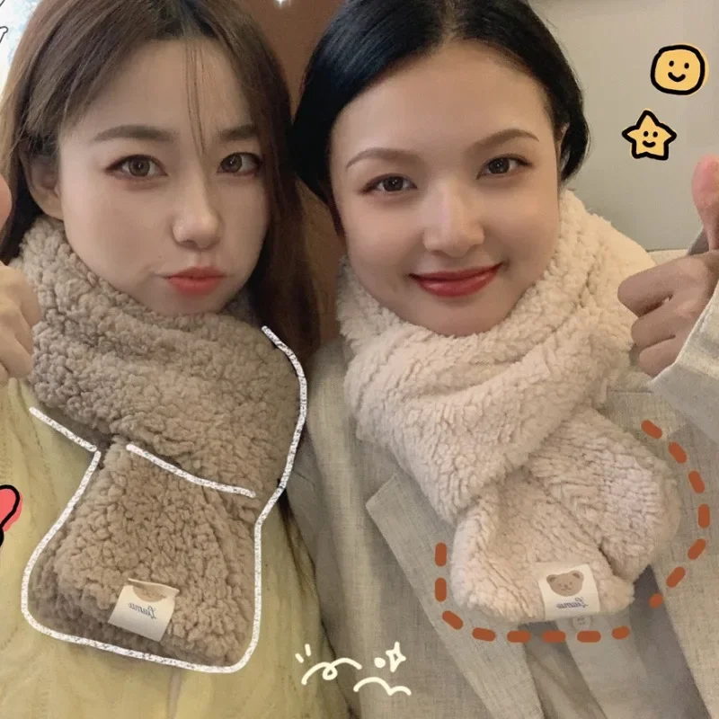 Шарф с милым медведем и надписью, милые зимние теплые однотонные плюшевые шали, ветрозащитный Повседневный мягкий шарф, уличный шейный платок