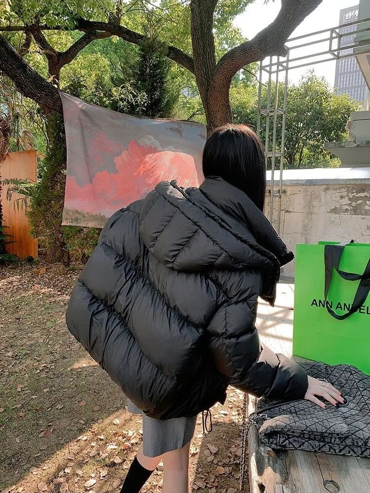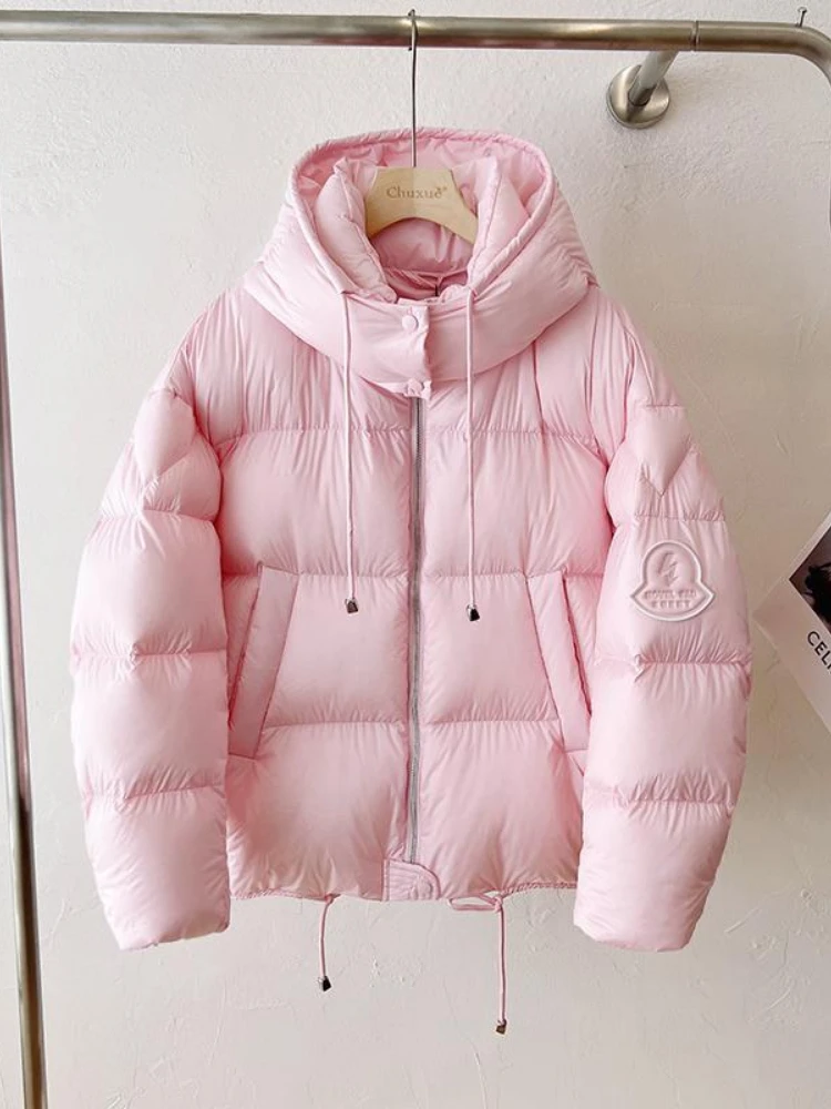 Зимняя пуховая куртка с капюшоном, теплая Женская одежда, пуховое пальто, пуховики, куртки, парки с надписью, Корейская шикарная верхняя одежда, пуховик, однотонная