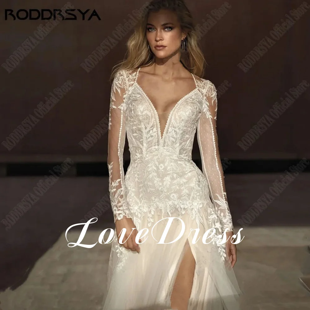Длинные элегантные кружевные вечерние платья с v-образным вырезом