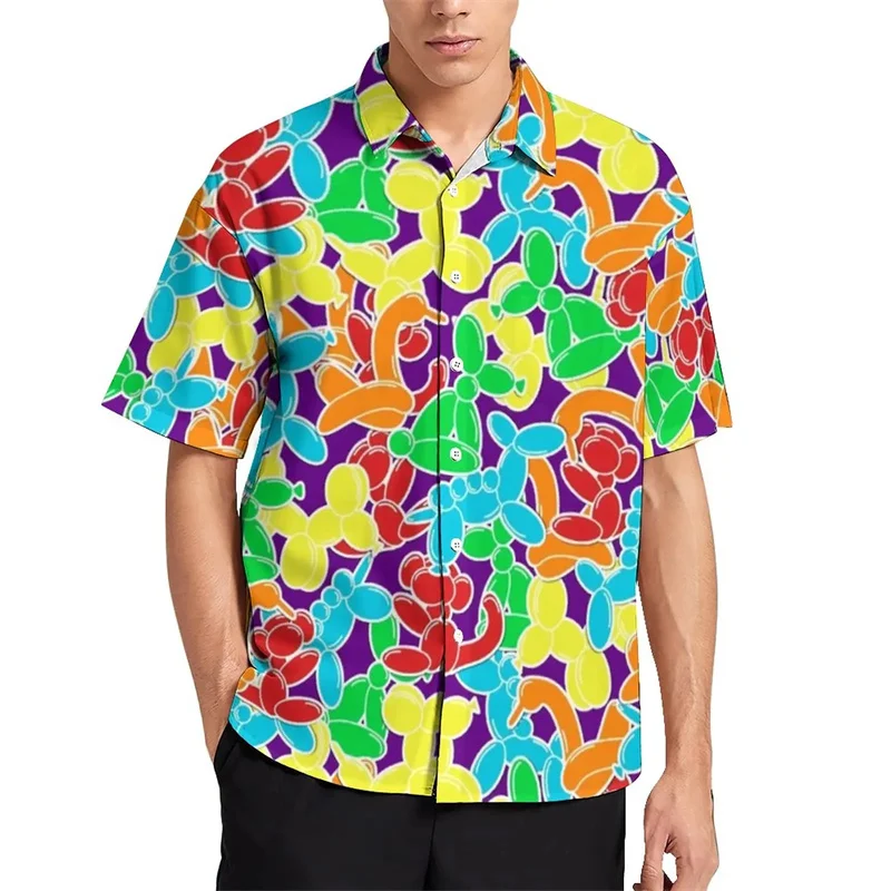 Гавайская рубашка с воздушными шарами для отдыха, 3d модная одежда для мужчин и женщин, летняя пляжная рубашка с коротким рукавом, Мужская Повседневная рубашка с лацканами для мальчиков