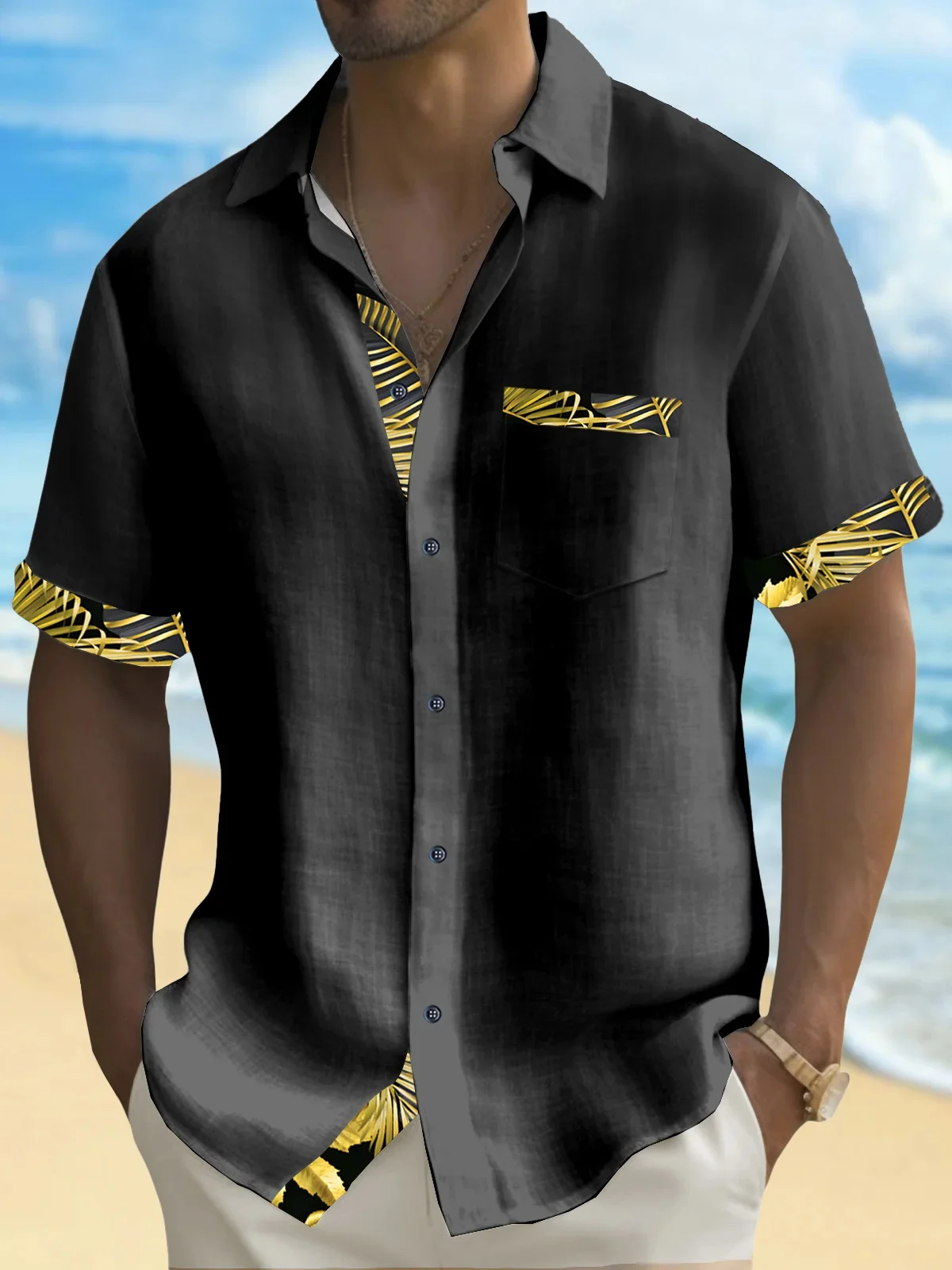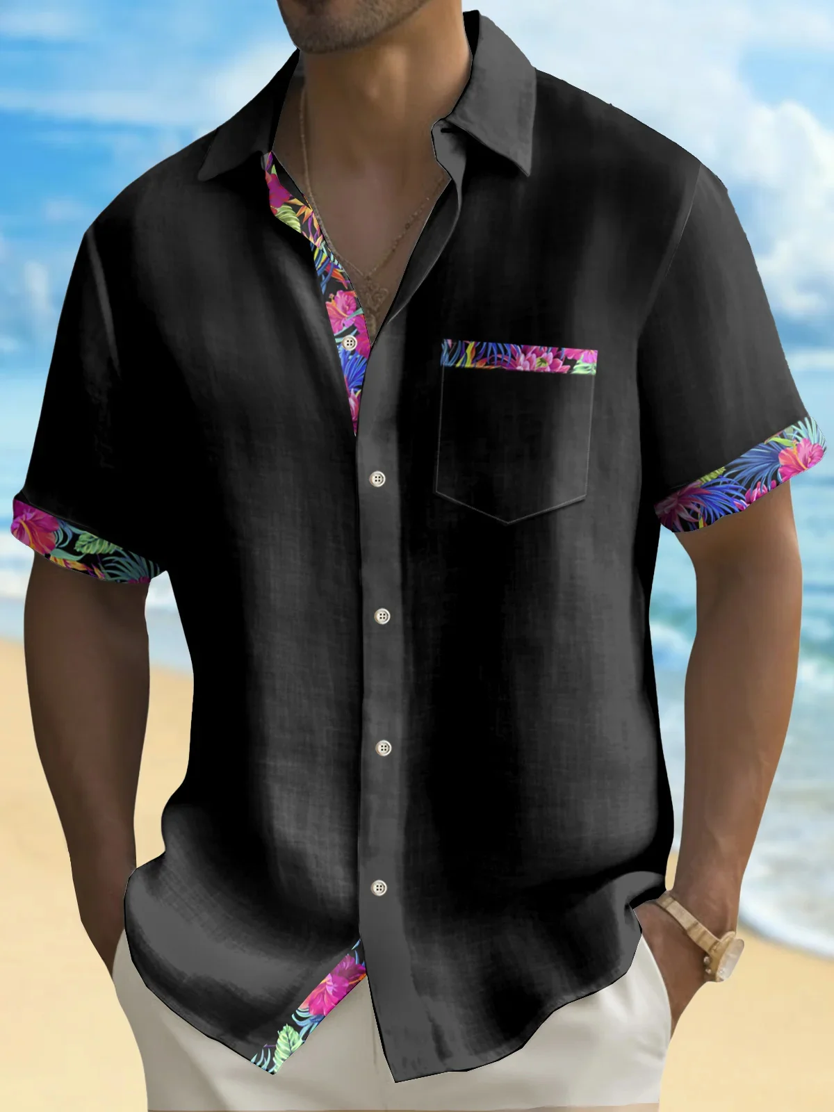 Мужская рубашка с коротким рукавом, Однотонная рубашка с карманами в стиле пэчворк, гавайская рубашка для отдыха, удобная ткань для лета