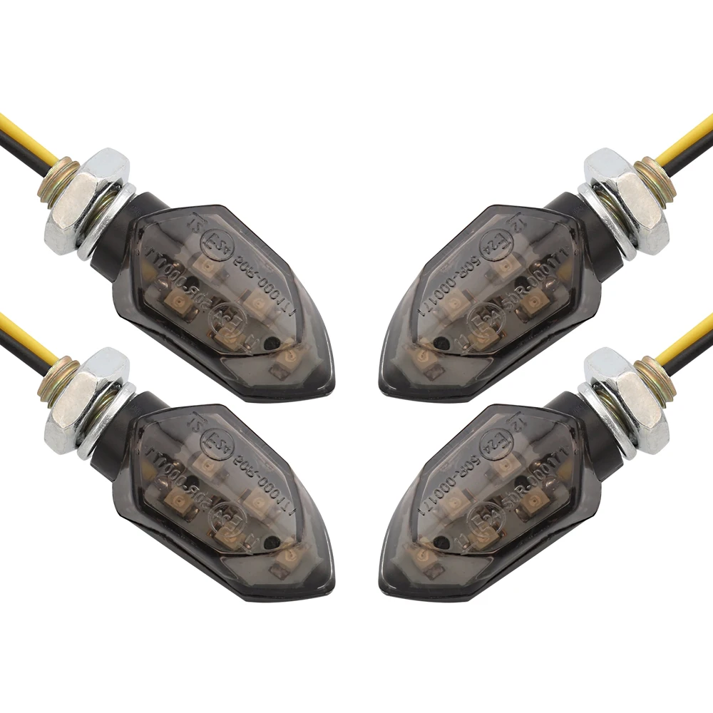 4 шт./компл., мини-мотоциклетные дымовые линзы, указатель поворота, 5 светодиодов, 12 В, янтарный мигающий индикатор, лампа для мотоцикла, универсальный, простой в установке