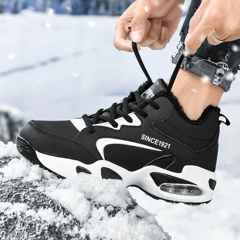 Мужские ботинки, новинка 2024, зимние тапочки, Теплая мужская обувь, водонепроницаемые Нескользящие плюшевые кроссовки, мужская теннисная обувь, ботинки, мужские зимние кроссовки