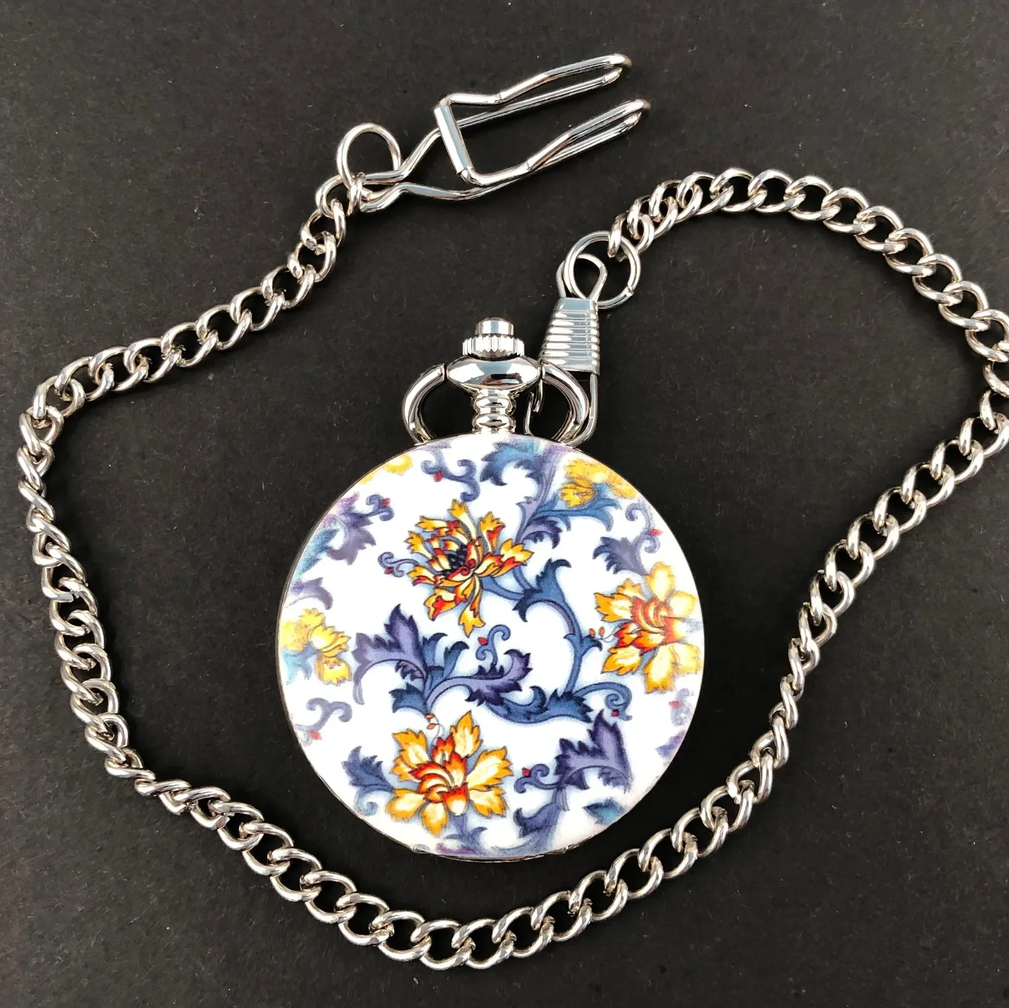 Винтажные карманные часы в китайском стиле из сине-белого фарфора, механическая цепочка с подвеской, роскошный модный подарок, часы на цепочке для свитера