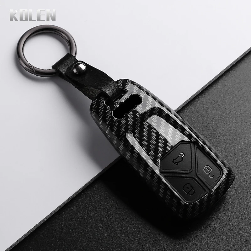 Чехол для автомобильного ключа из углеродного волокна из АБС-пластика для Audi A4 B9 A5 A6 8S 8W Q5 Q7 4M S4 S5 S7 TT TTS TFSI RS Protector Shell Fob Аксессуары