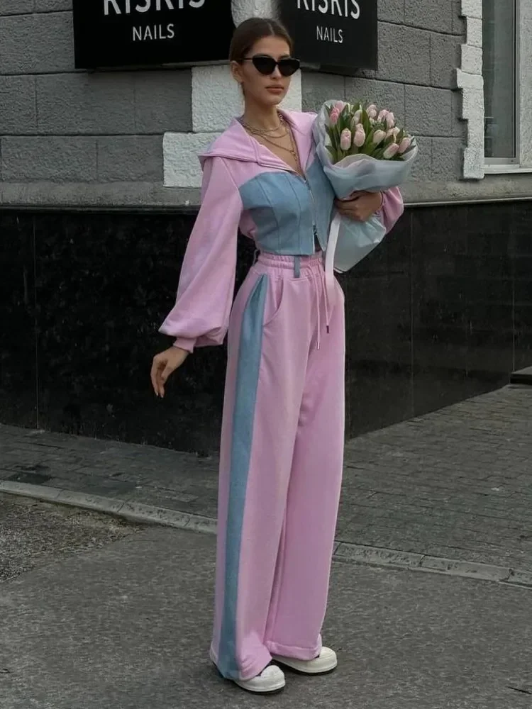 Zekye, осенне-весенне-летние толстовки, комплект из 2 предметов, женский спортивный костюм на молнии с длинными рукавами, новые укороченные топы, комплект спортивных брюк с широкими штанинами