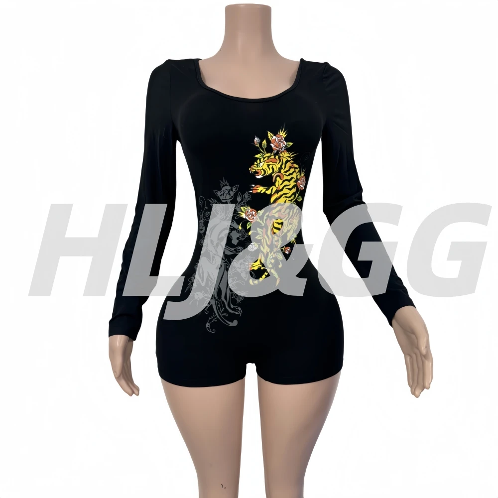 HLJ &GG черные сексуальные облегающие комбинезоны Y2K с узором и принтом, женские комбинезоны с круглым вырезом и длинными рукавами, модные женские INS, новые комбинезоны