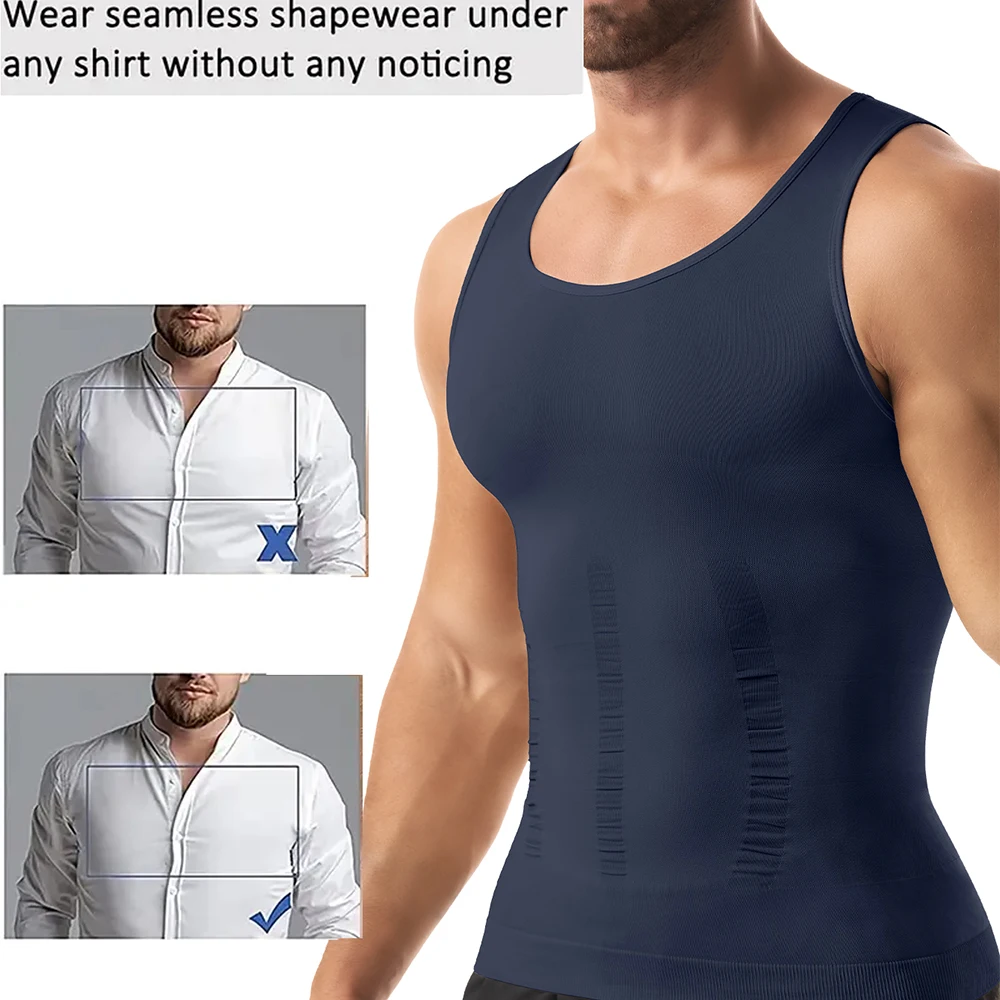 Мужская компрессионная рубашка для формирователя тела, жилет для похудения, плотное нижнее белье для живота, майка