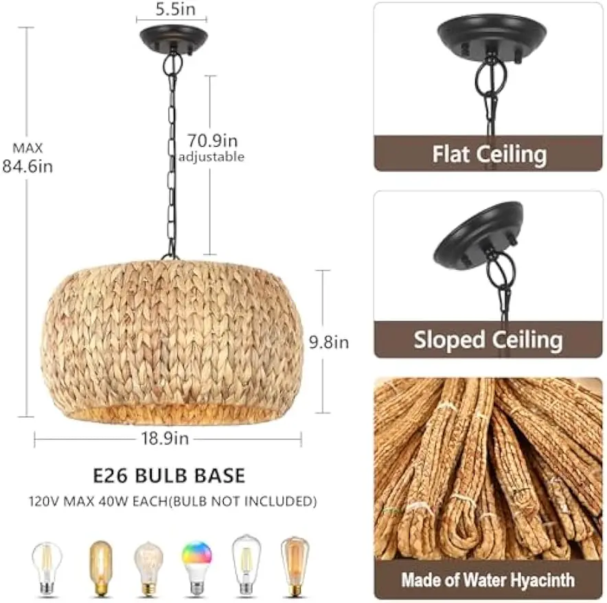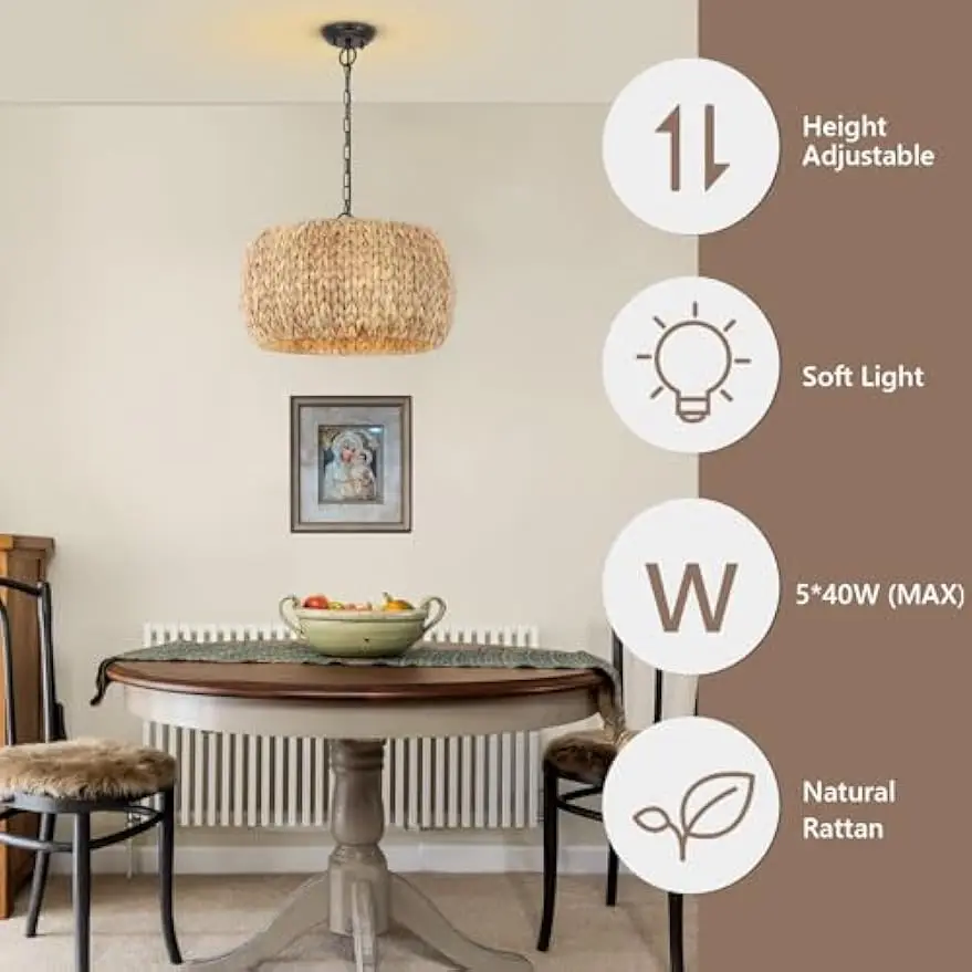 Подвесной светильник из ротанга, 5 светильников, ваби-саби, подвесная люстра, светильник для столовой, кухни, острова, спальни, гостиной