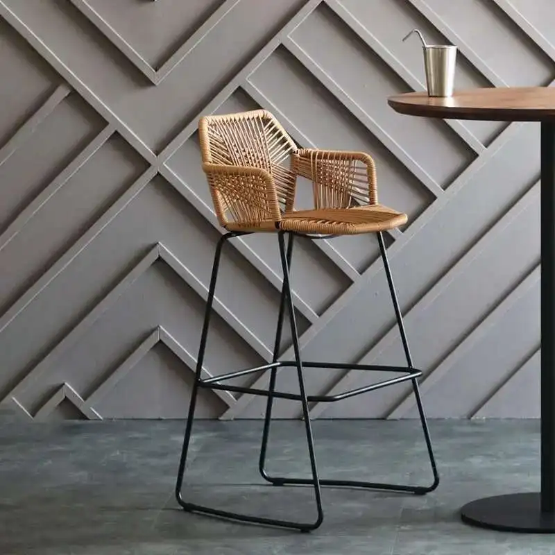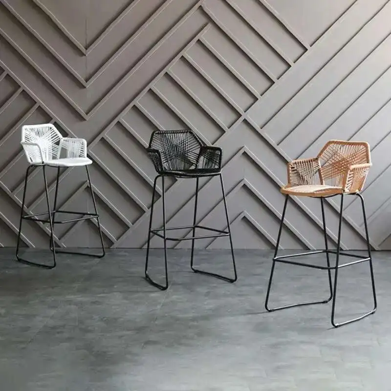 Современные барные стулья из кованого железа, высокие табуреты для кухни, скандинавская мебель для бара, полипропилен, ротанг, домашнее кафе, уличное кресло для ресторана