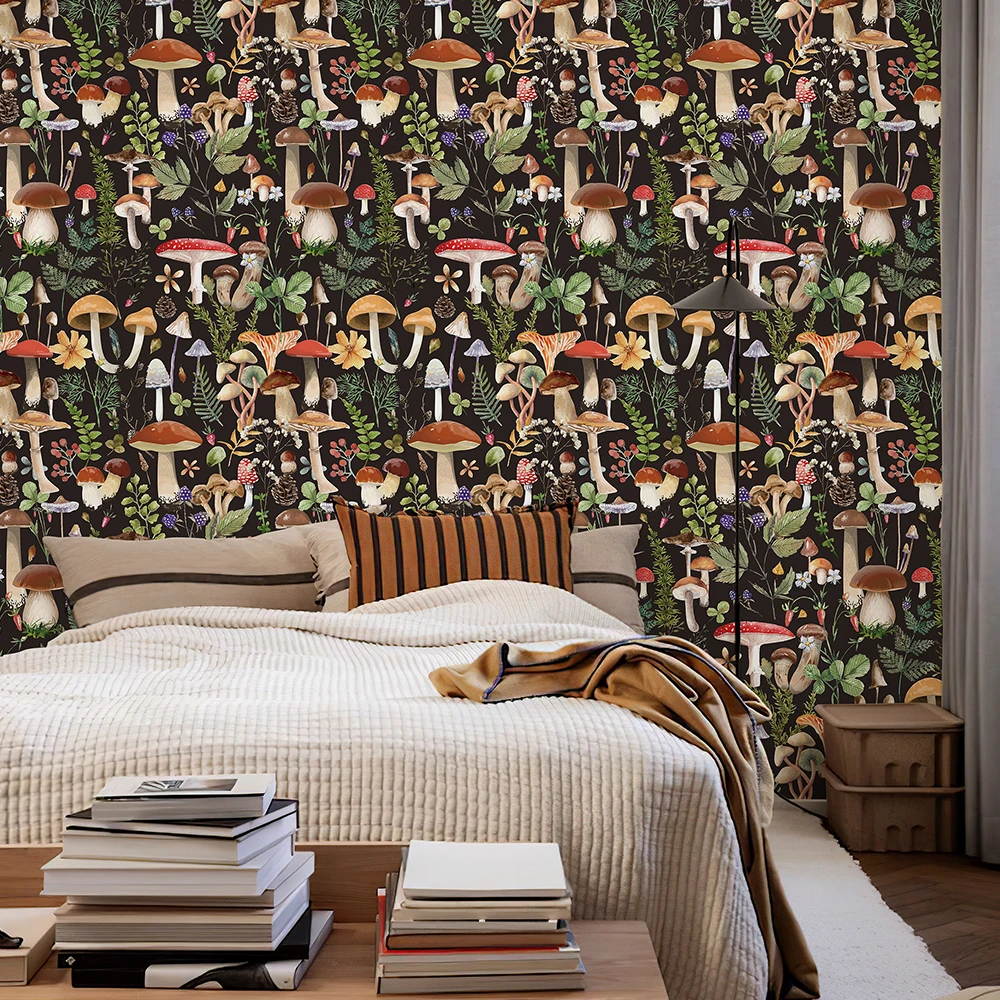 Милые обои с грибами, самоклеящиеся