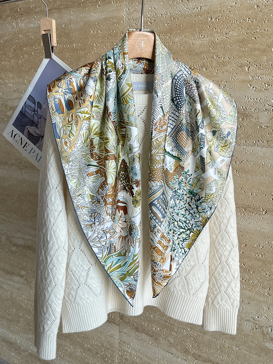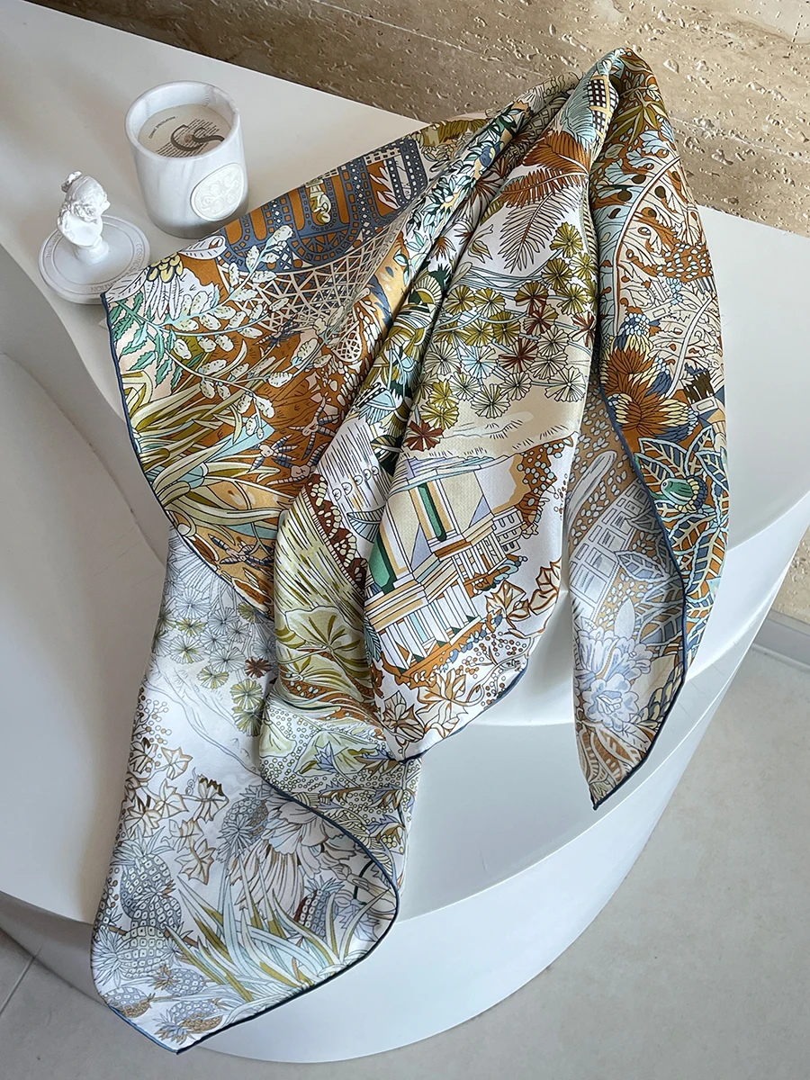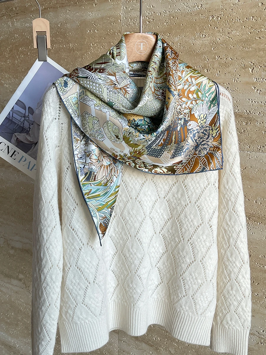 Саржевый шелковый шарф 90 см, роскошные квадратные банданы, ручные шали скрученными краями, 90 головок, аксессуары для волос и шеи, рождественский подарок для мамы