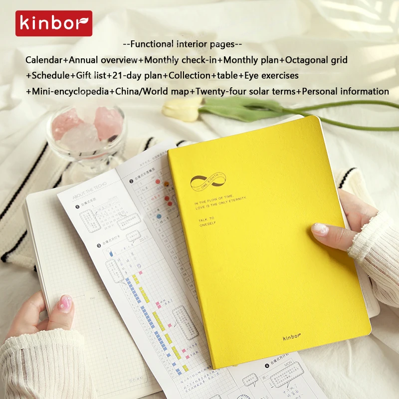 Kinbor Planner Самодисциплина Восемь сеток 78 г Письменная бумага A5 Ежедневный еженедельник Управление временем PU cuadernos Список дел