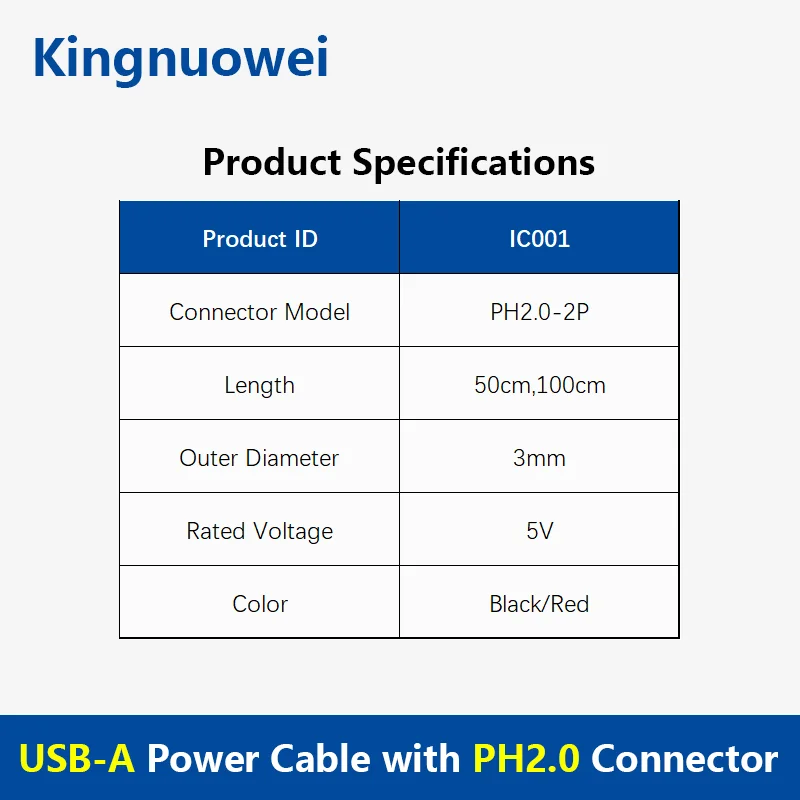 Кабель питания USB-A с разъемом PH2.0 Кабель питания USB-A — PH2.0 2-контактный