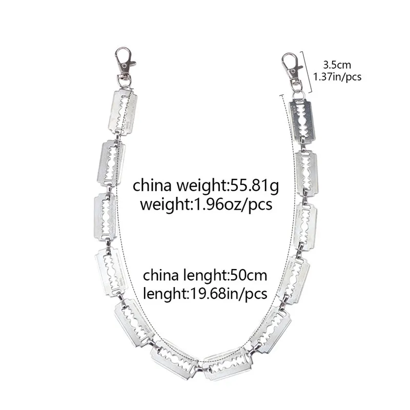 Новый персонализированный нейтральный пояс в стиле панк, крутой стиль, металлическая цепочка для брюк с лезвием, уличная тенденция, мужская и женская поясная цепочка
