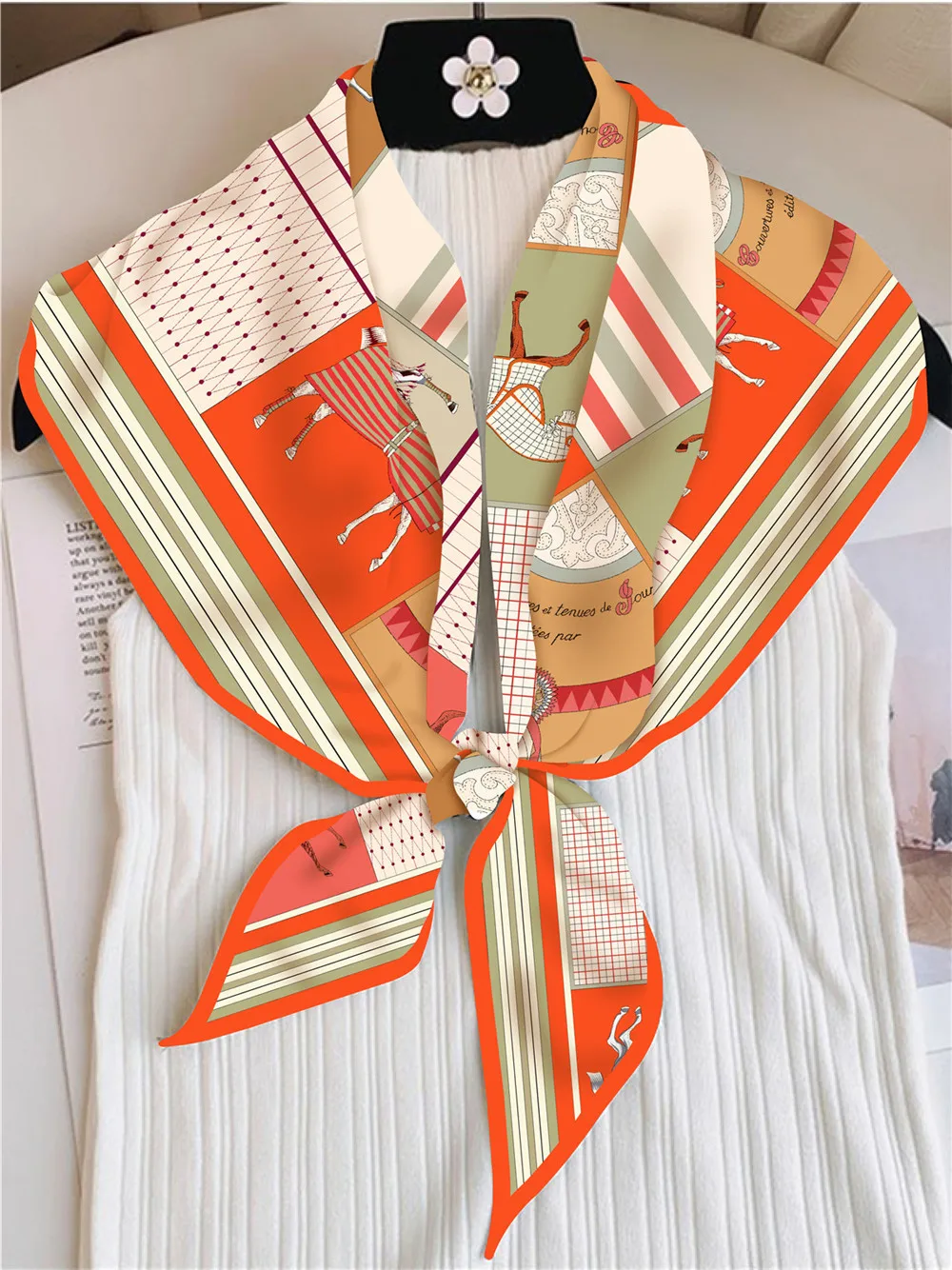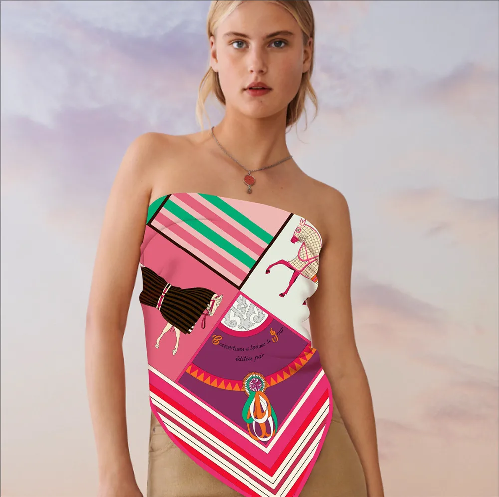 Большой треугольный шелковый шарф с лошадью, роскошные дизайнерские шали, саржевые шарфы, рождественский подарок для мамы, сумка на голову, аксессуары