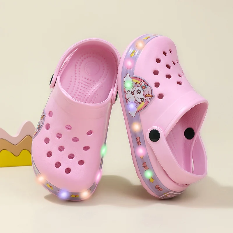Легкие сандалии для девочек, розовые летние пляжные детские туфли с мультяшным принтом, уличная нескользящая детская повседневная обувь классического дизайна