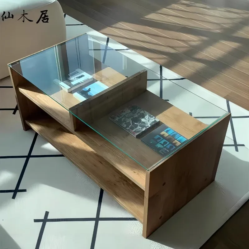 Столы для кафе в скандинавском стиле в стиле ретро, современный стиль ваби-саби, креативные двухслойные журнальные столики, деревянная мебель для кафе с выдвижным ящиком Salontafel FYCT