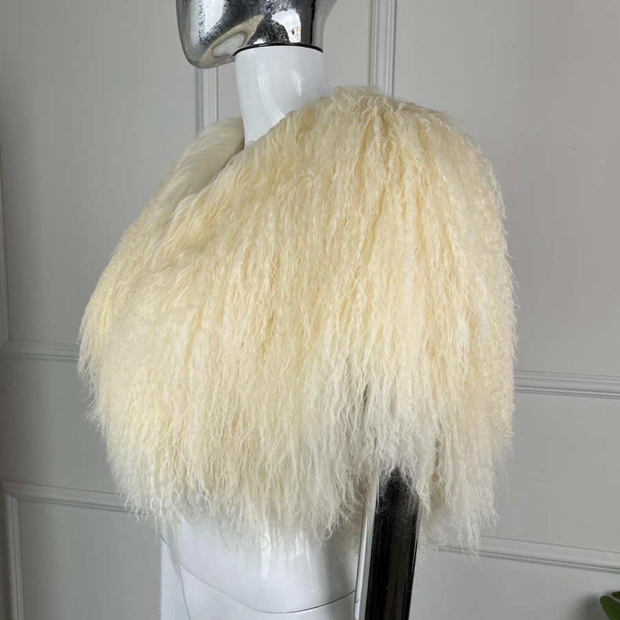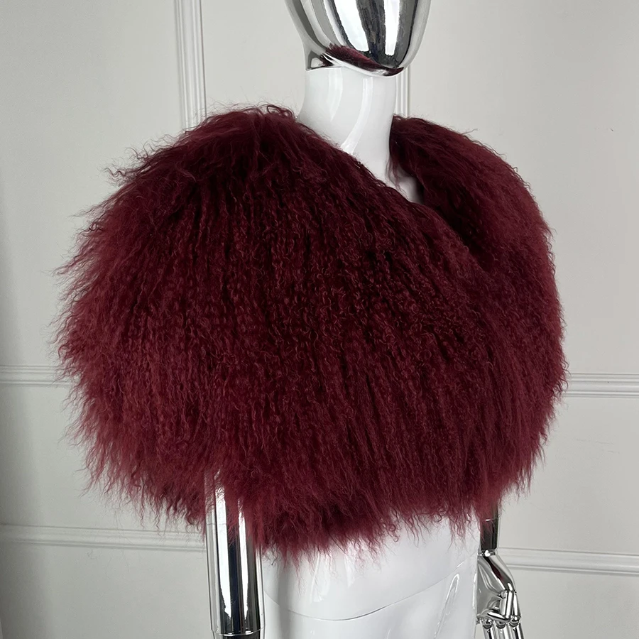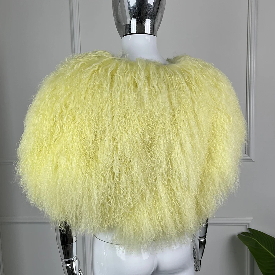 Короткое монгольское меховое пончо для женщин, укороченная меховая куртка, роскошные теплые новые поступления, женская дубленка