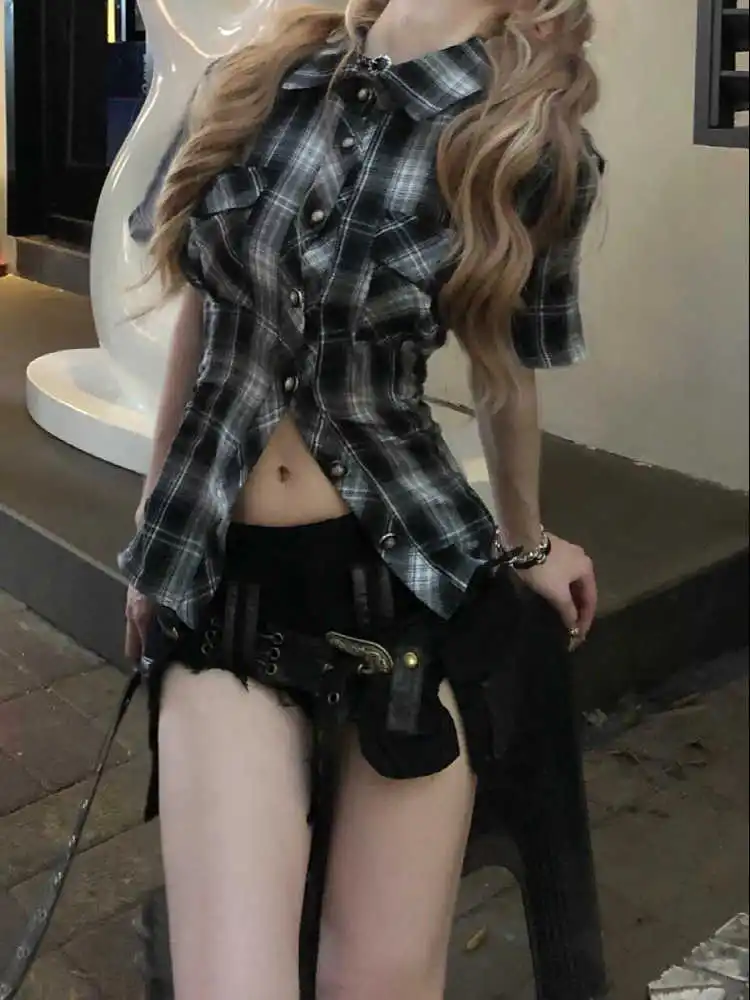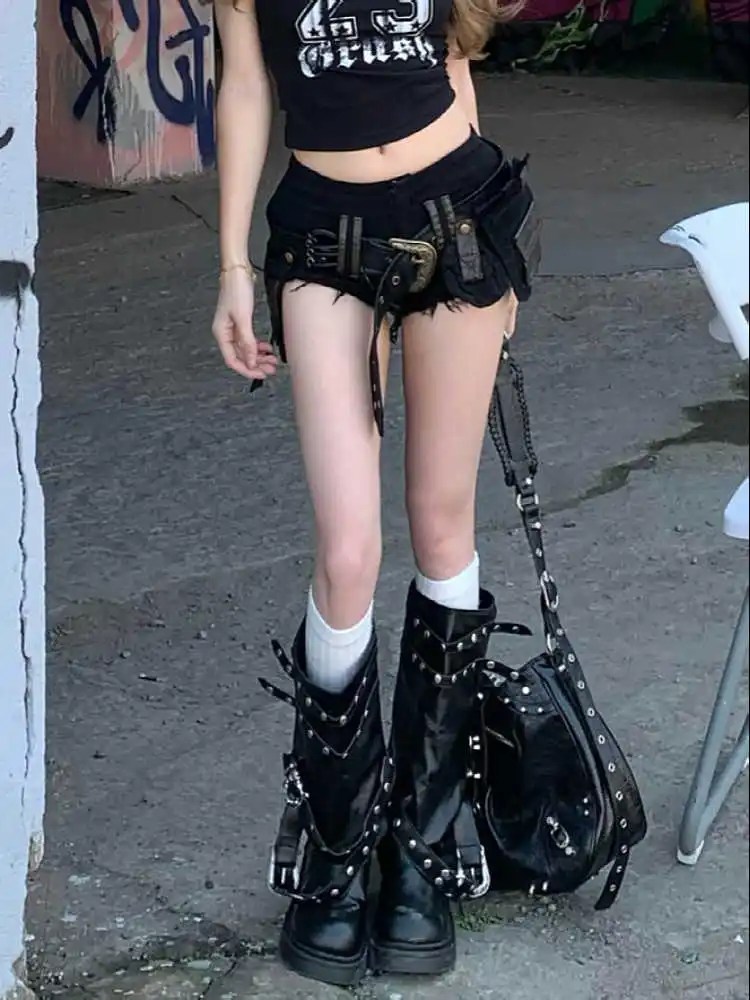 Летние женские джинсовые шорты Goblin Core Gyaru Coquette с низкой посадкой и поясом, японские джинсовые шорты в стиле Харадзюку, темные академические Kpop Y2k
