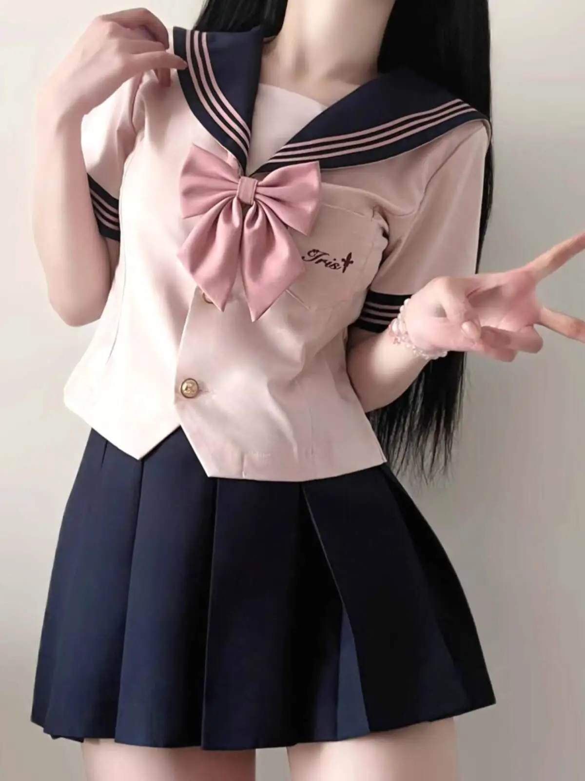 Розовый матросский костюм с застежкой на талии в академическом стиле JK, униформа, комплект плиссированной юбки, новая модель