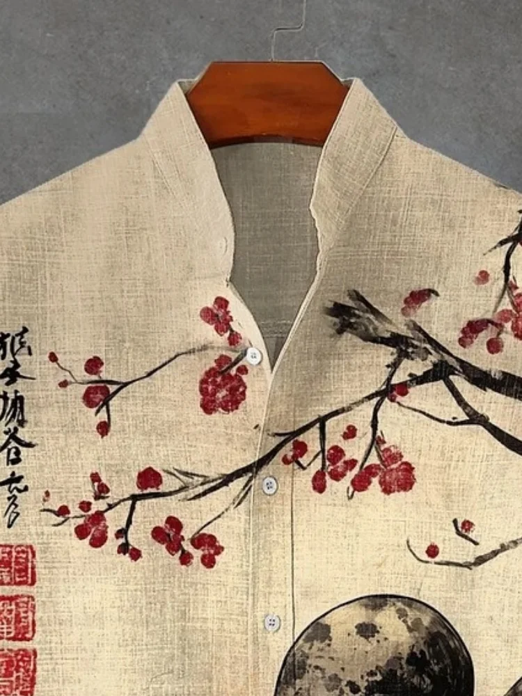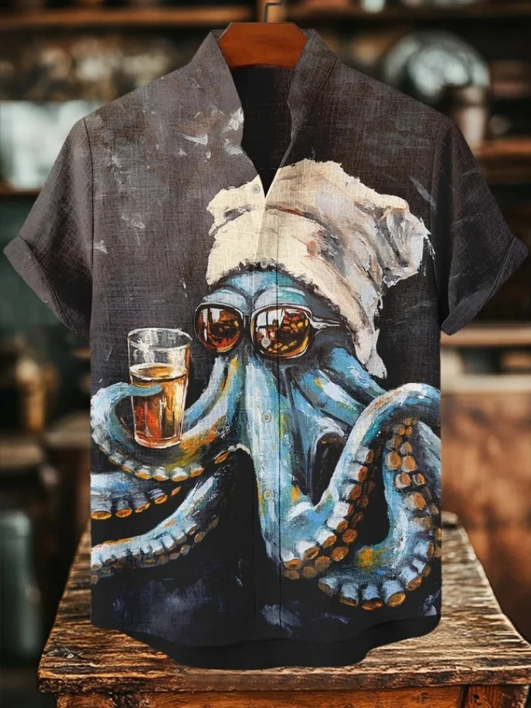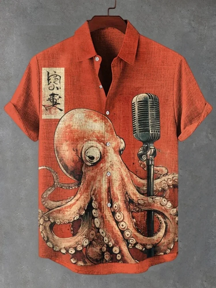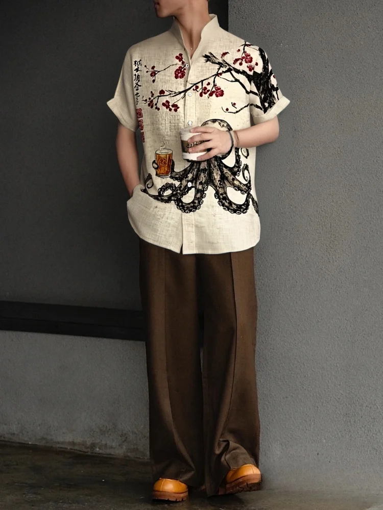 Мужская повседневная рубашка с принтом «Осьминог» под вишневым деревом, праздничная верхняя одежда в японском стиле, винтажная блузка в стиле Харадзюку