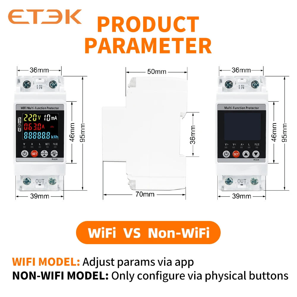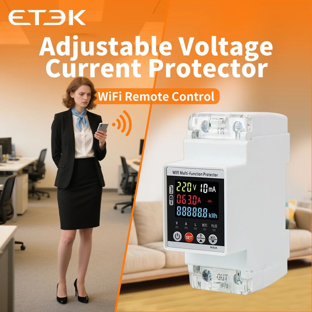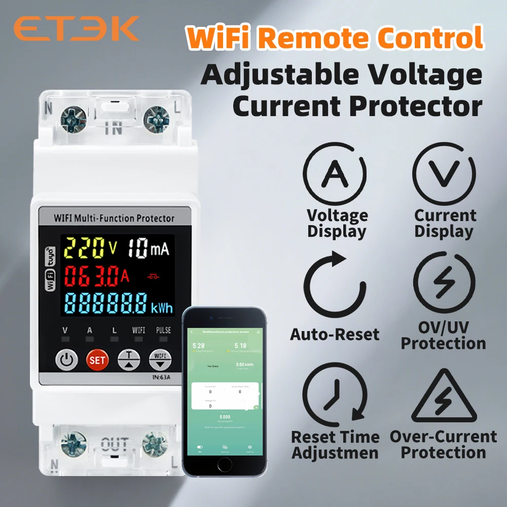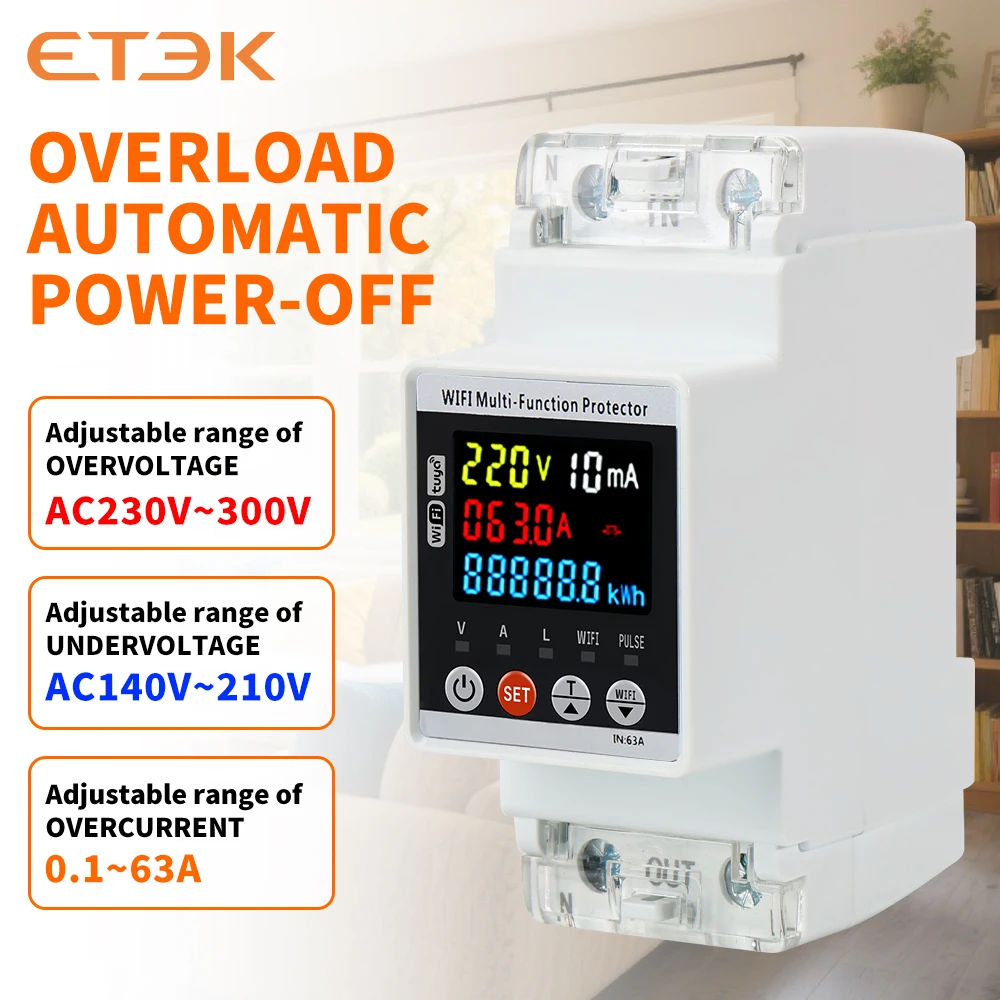 ETEK Однофазный V/A защита от повышенного/пониженного напряжения, устройство защиты от утечек, функция инструмента, ЖК-дисплей * интеллектуальное управление