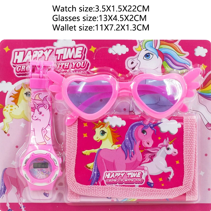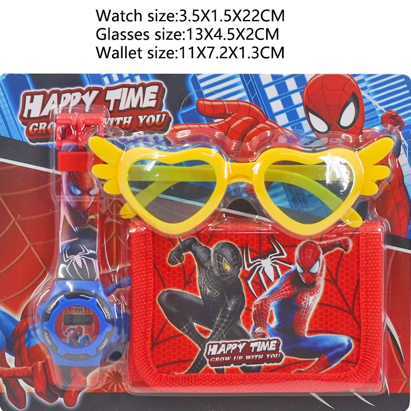 Новые детские часы «Hello Kitty» из 3 предметов с единорогом и очками-кошельком, часы с мультяшным Человеком-пауком для детей, набор игрушек, reloj infantil