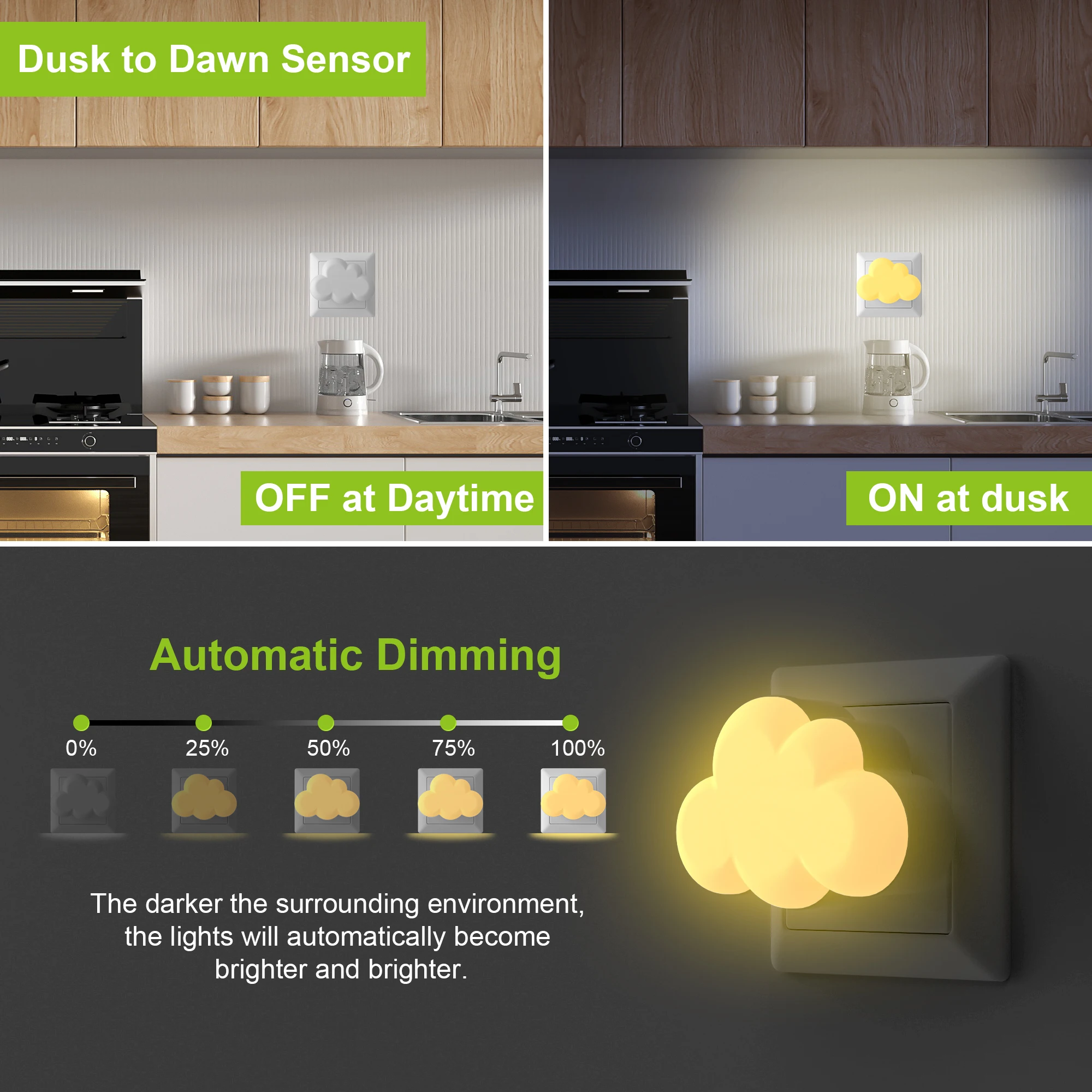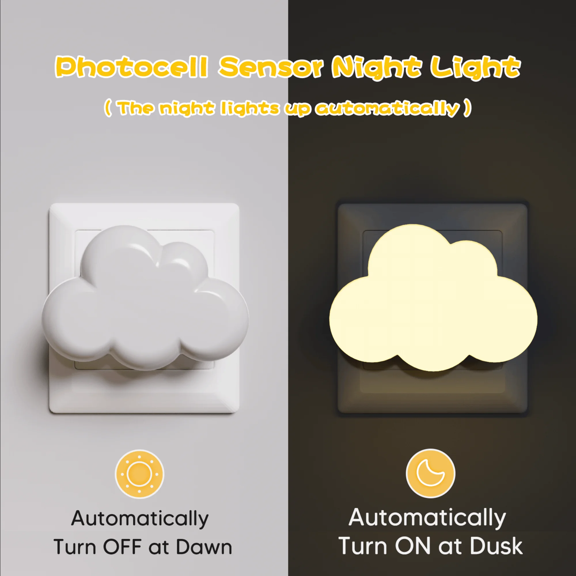 Светодиодный датчик освещенности, ночные огни, автоматическое включение/выключение, ночные огни в форме облака для детей, спальня, лестница, прихожая, ночные лампы для изголовья кровати