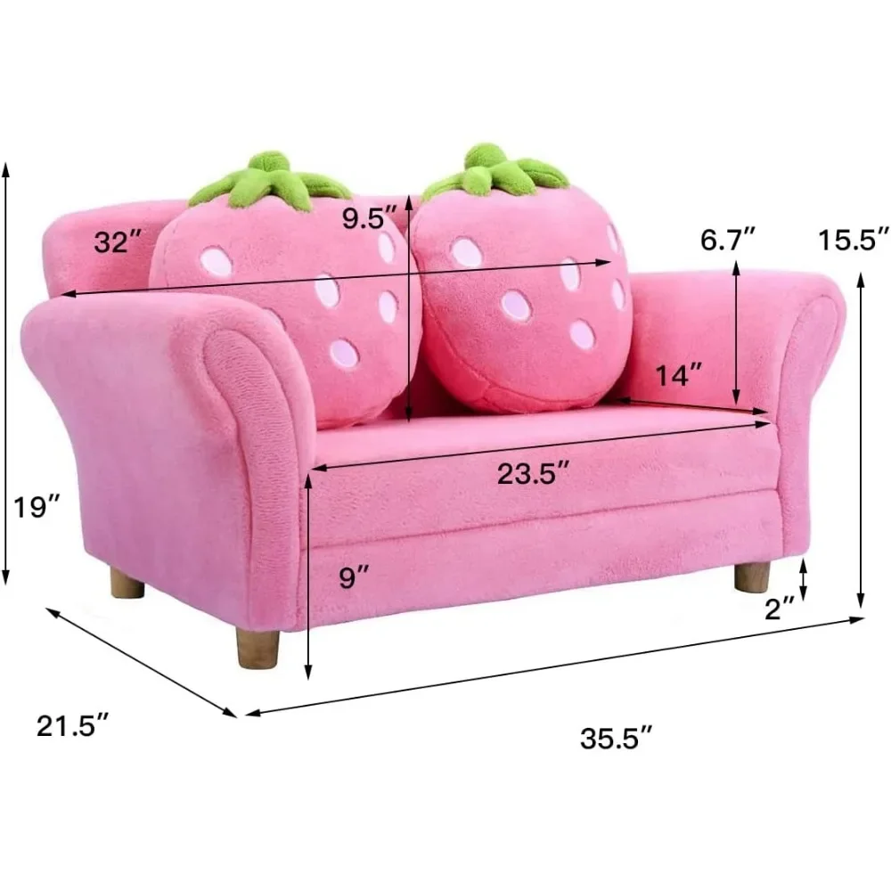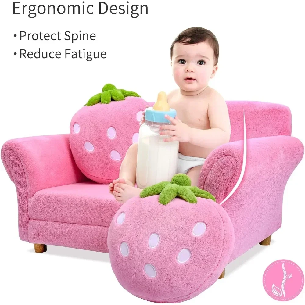 % детский диван, мягкий детский диван-кресло с эргономичной спинкой и 2 клубничными подушками, двухместное детское кресло для