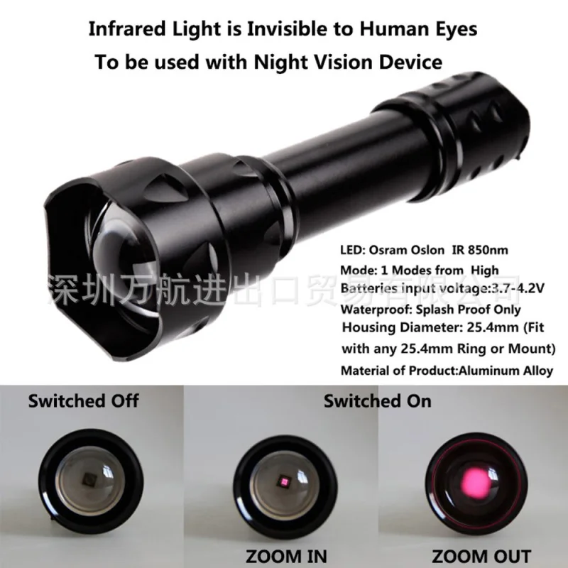 T20 IR 5W 850NM/5W 940NM Выдвижной инфракрасный фонарик с зумом