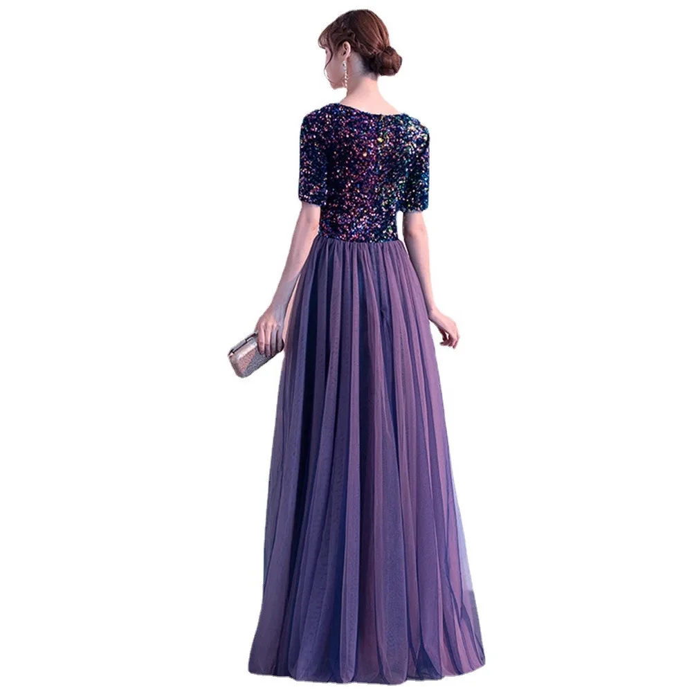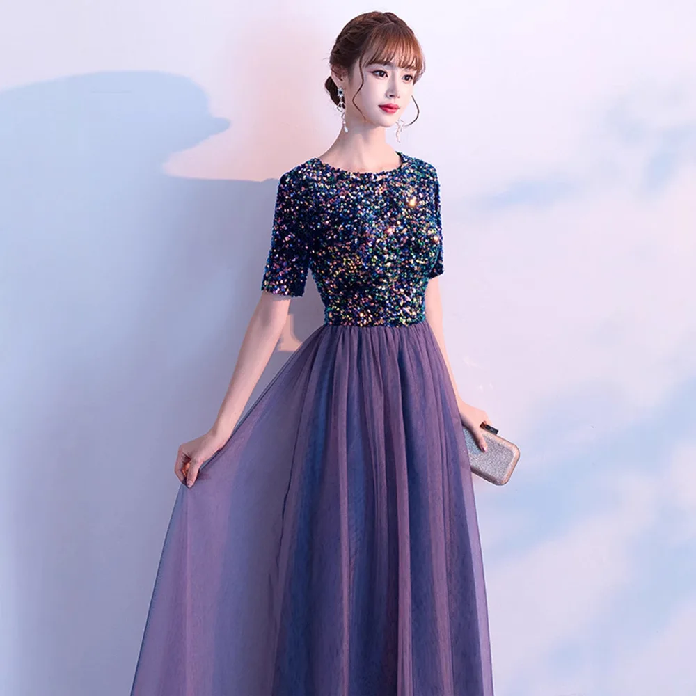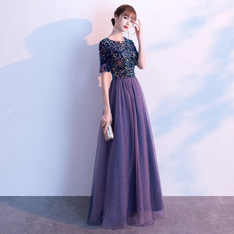 Длинные платья трапециевидной формы из простого джерси с блестками и высоким воротником по индивидуальному заказу