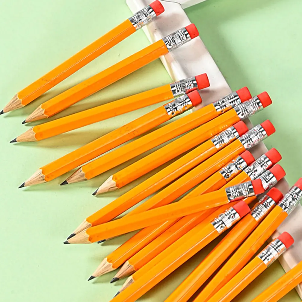 72 шт., мини-карандаш, короткий, деревянный, желтый, стираемый, гладкий, портативный для офиса, школы, искусства, классных комнат, студентов, офиса