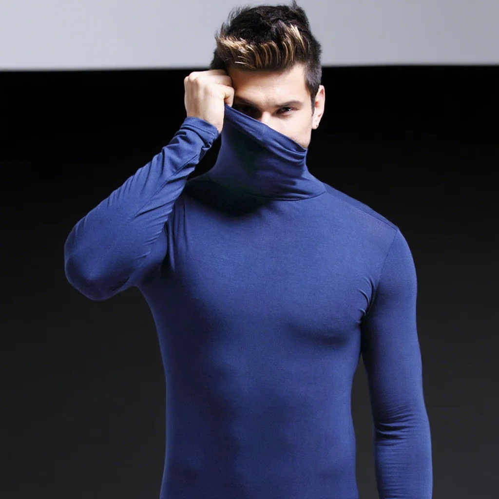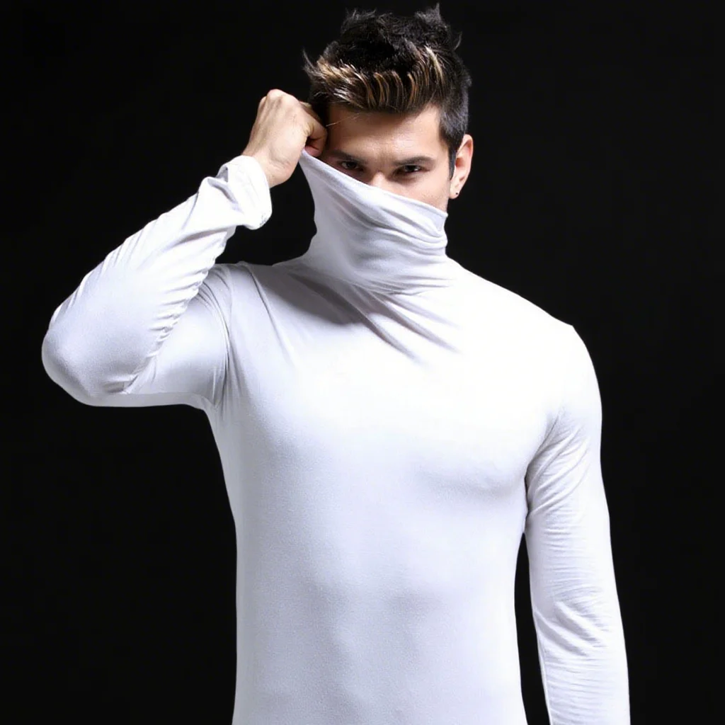 Осенне-зимнее мужское теплое модное теплое нижнее белье с полувысоким воротником, мужская базовая футболка со стоячим воротником, пуловер, топ