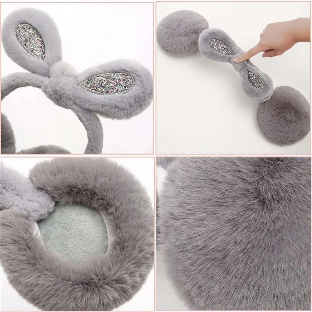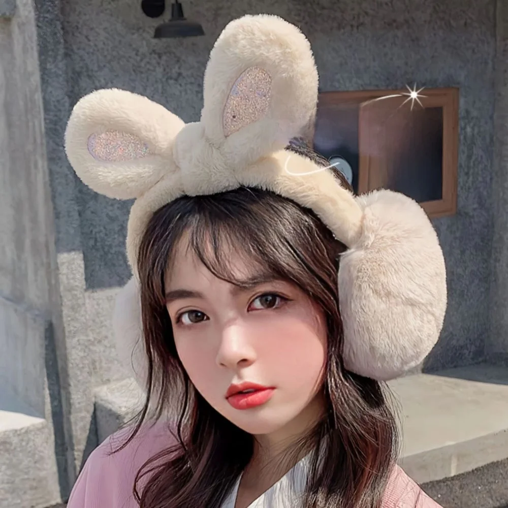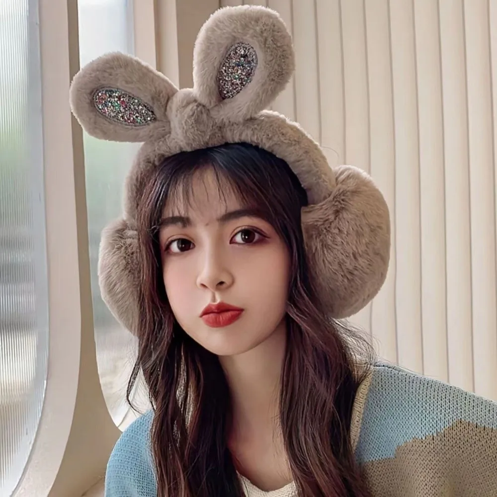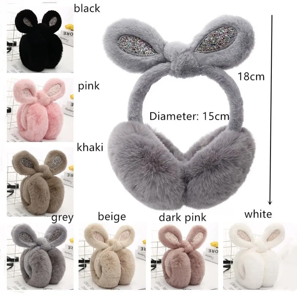 Модные плюшевые наушники с кроличьими ушками и блестками, складные утолщенные грелки для ушей, сохраняющие тепло, незамерзающие чехлы для ушей для женщин и девочек