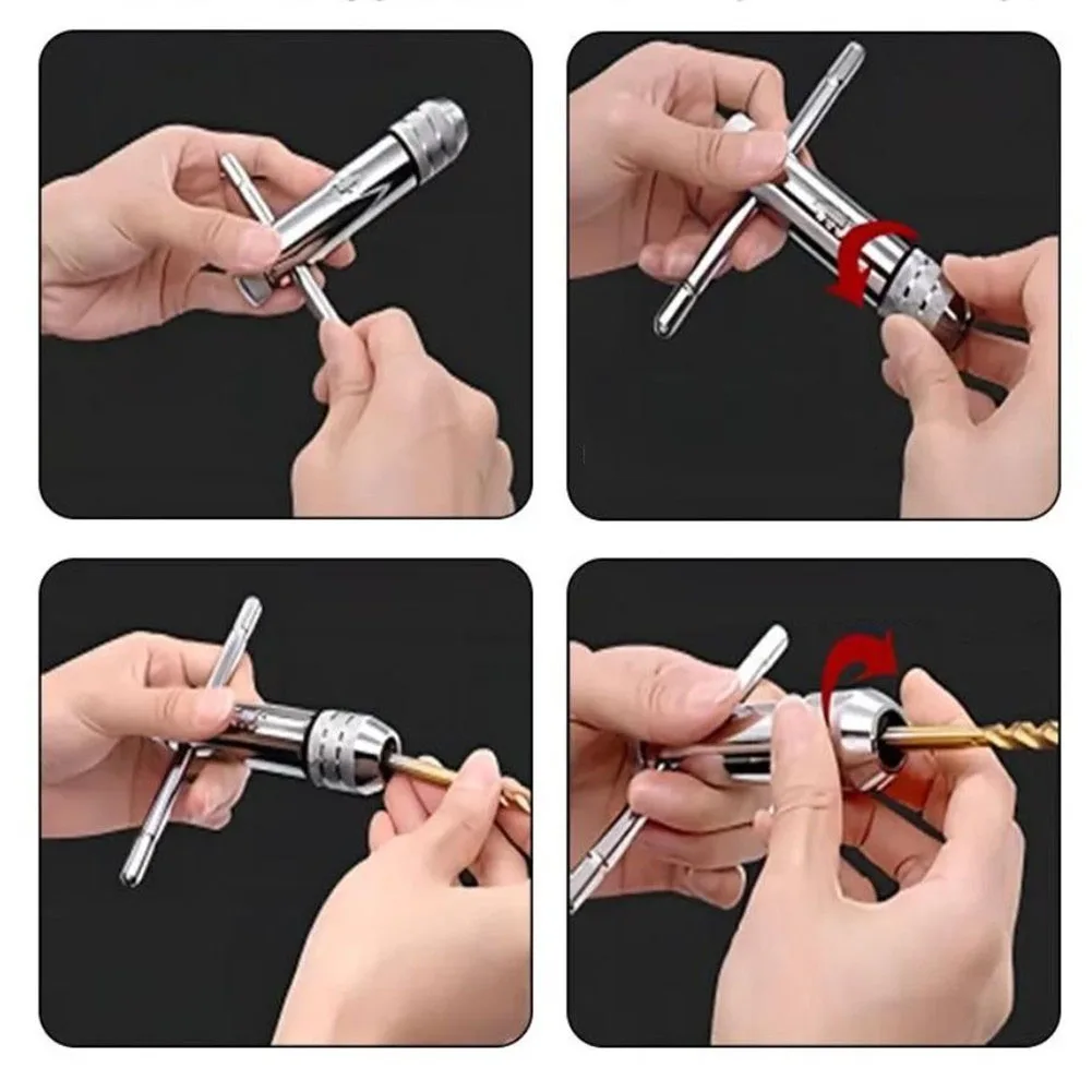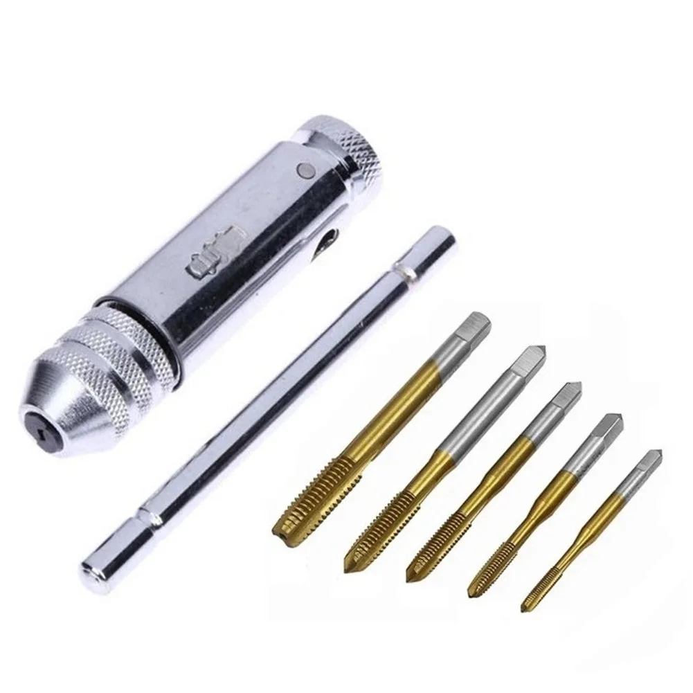 6 шт., дрель для нарезания резьбы, регулируемая Т-образная ручка, трещотка, метчик, развертка, ручной держатель, гаечный ключ M3-M8, ручные инструменты
