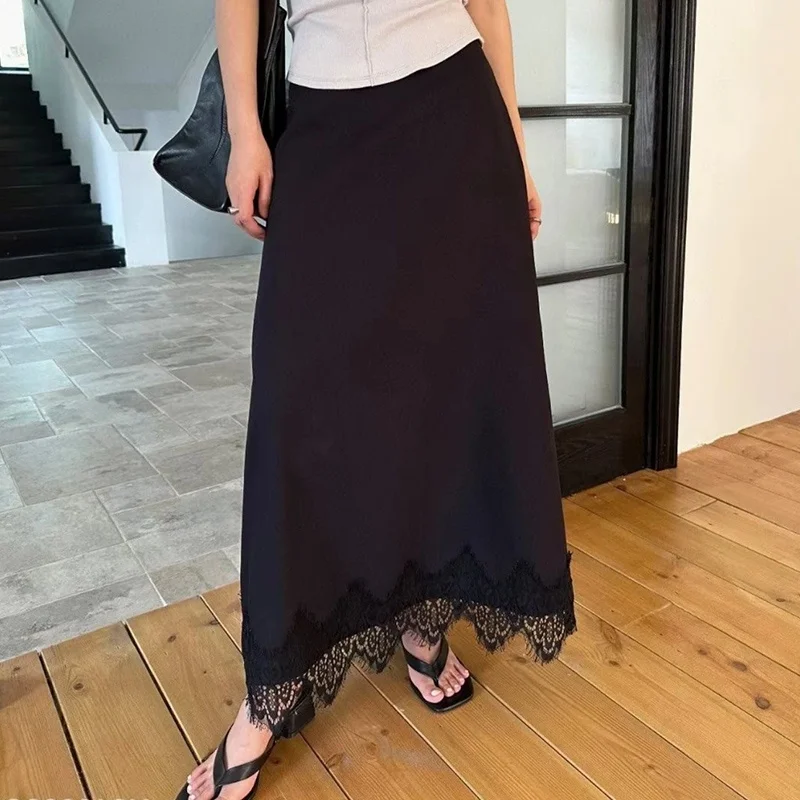 Черный кружевной лоскутный пуловер с грибком